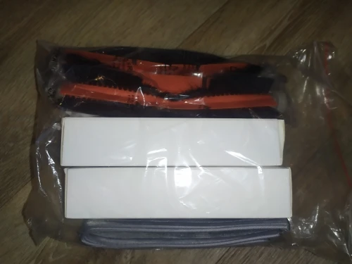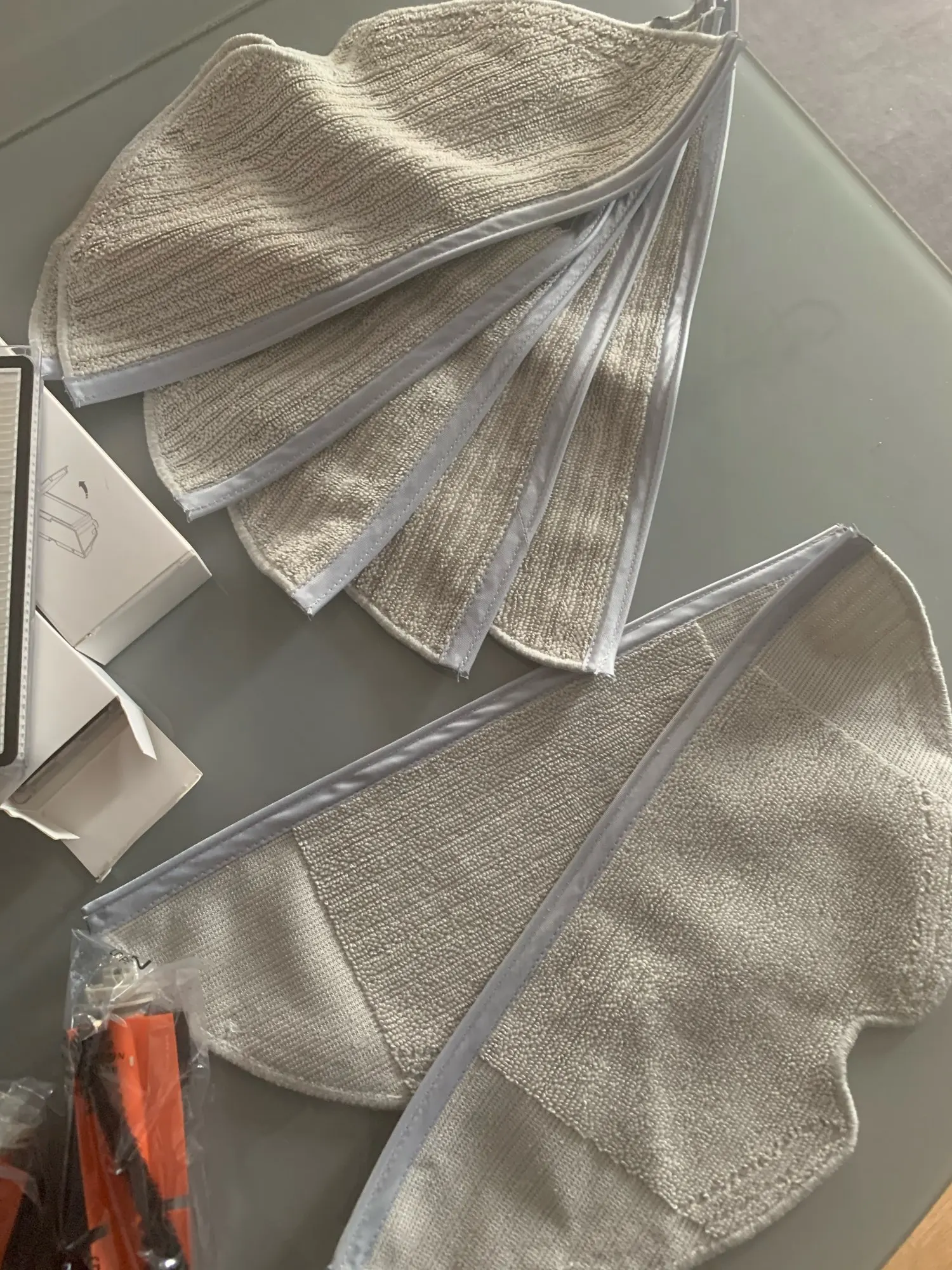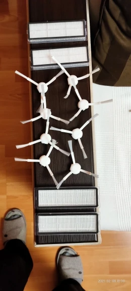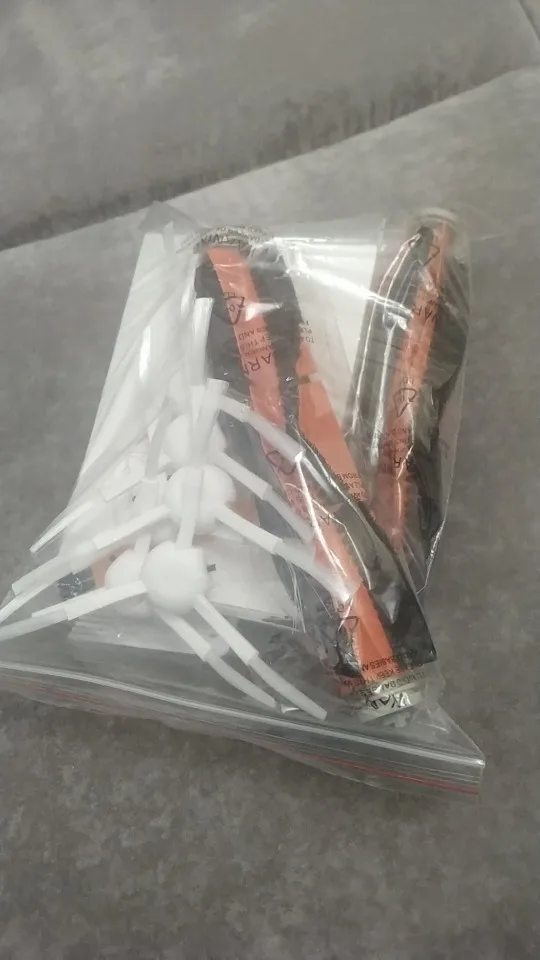 посылка пришла быстро за 2 недели, качество изделий не хуже оригинала, боковые и центральные щетки по жёсткости и качеству не уступают оригинальным. фильтра в пылесборник вставляются туго в притык и плотно. Еще у фильтров сверху над основным фильтрующим элементом. приклеена мелкая сеточка , избавляет от забивания ворсом внутри фильтр. Тряпки нового формата с ворсом по все длинне, у оригинала ворс только по середине тряпки, площадь протирания меньше, качество ворса нормальное. К покупке рекомендую.