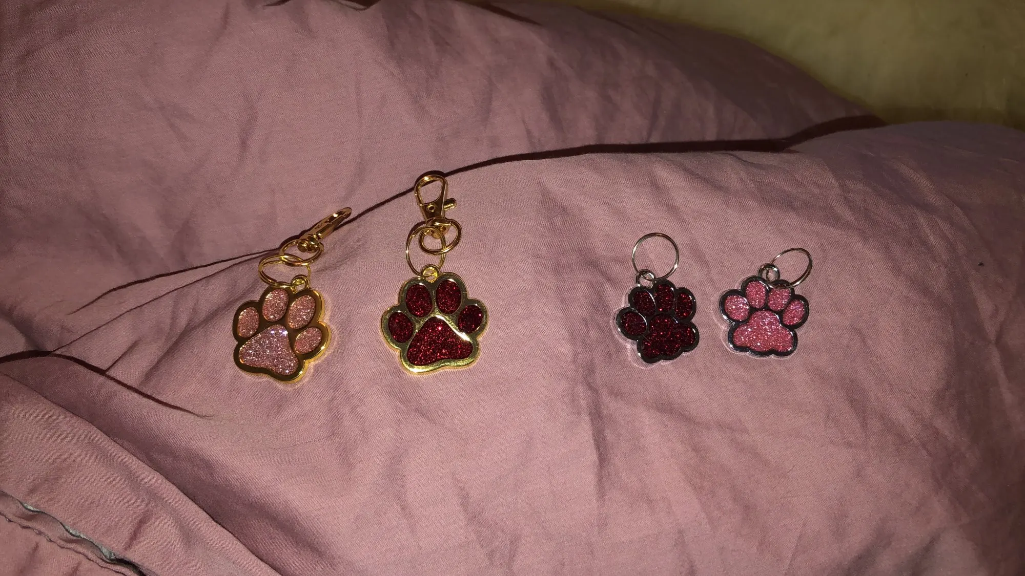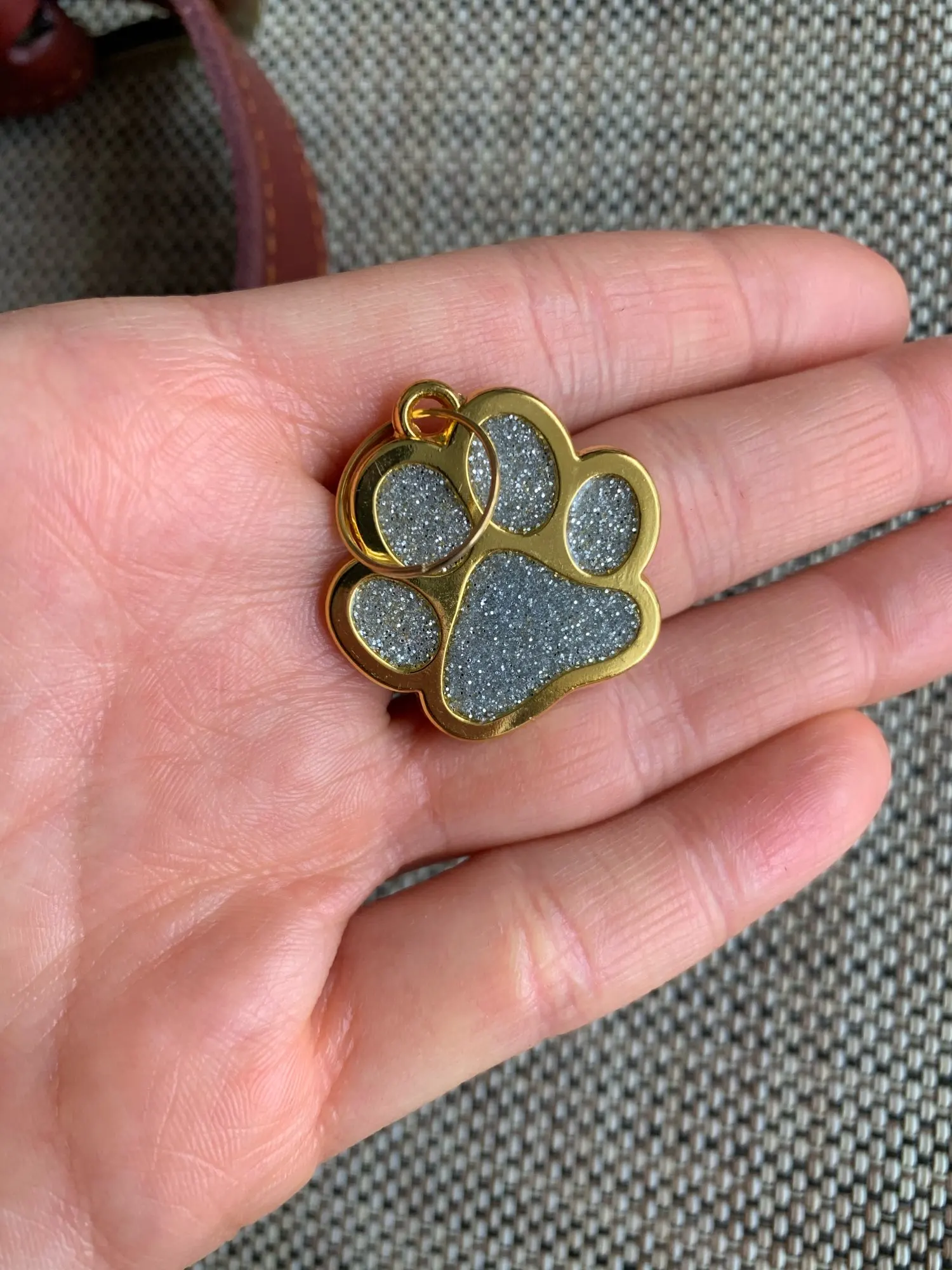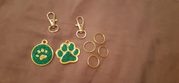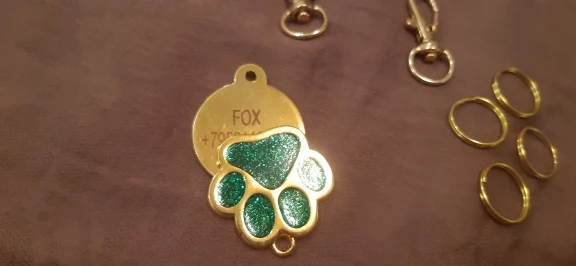 Красивые собачьи бирки, но вы можете почувствовать, что знак грубая. Поэтому я worriet, что вы можете поцарапать знаки. Название собаки очень маленькое. С большим именем и более гладкими рисунками, он был идеальным. Золотые здесь. Серебряный, где есть запас из другого магазина, потому что я был worriet, что они прибыли не вовремя, но он прибыл быстрее, чем я amagine.