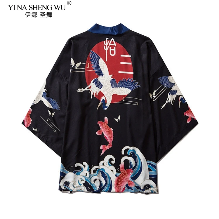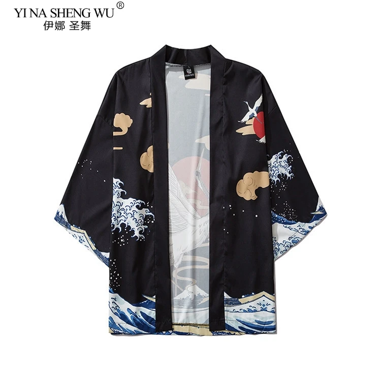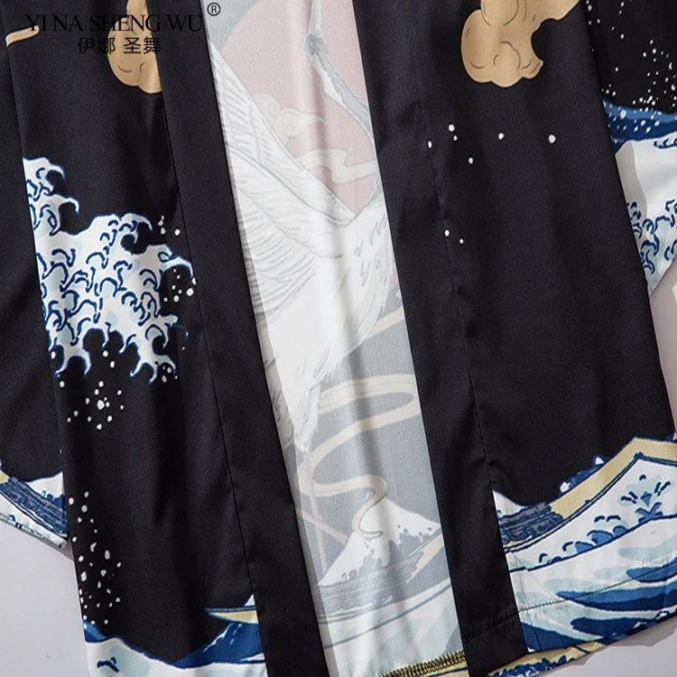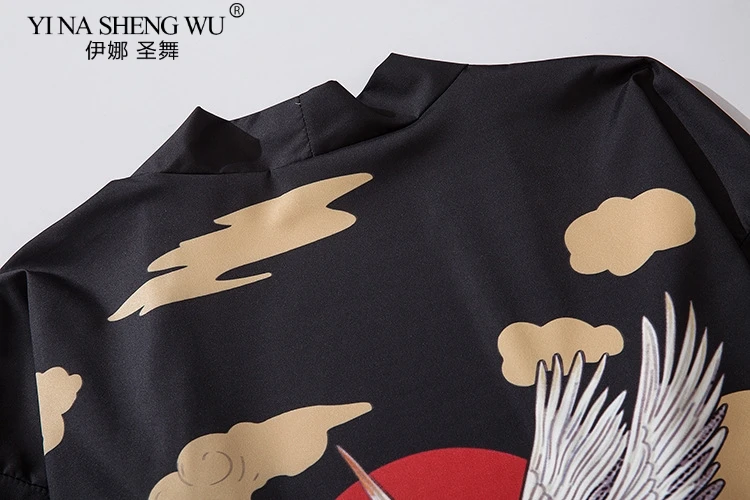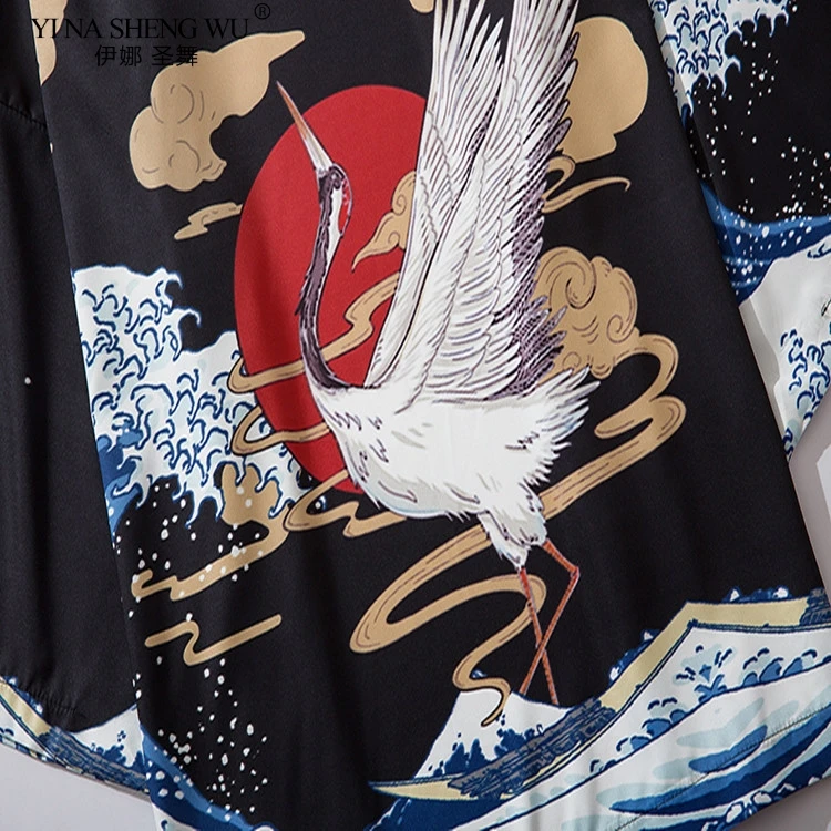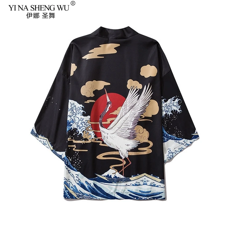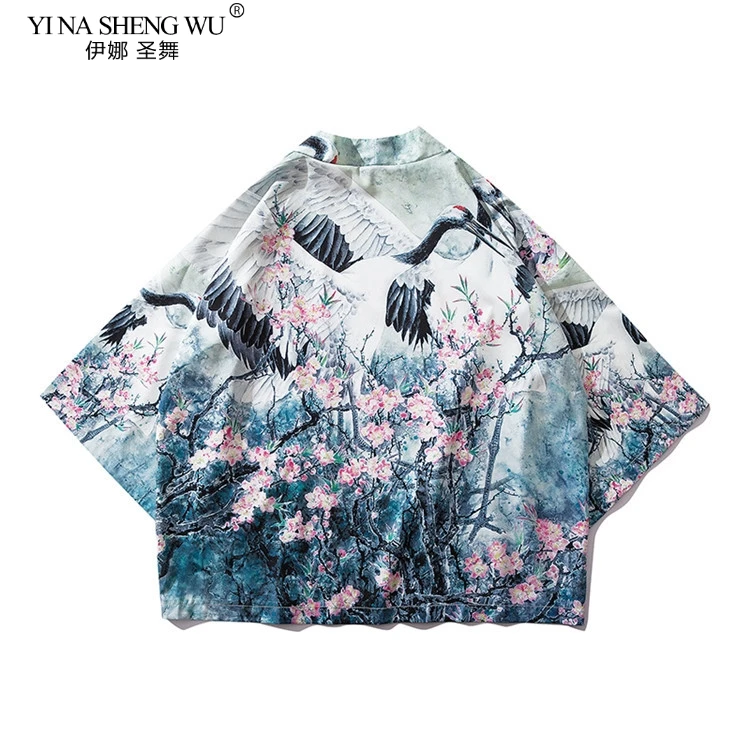 Кимоно в японском стиле для женщин и мужчин, рубашка с принтом журавлей, юката, хаори, Оби, винтажная традиционная пляжная одежда