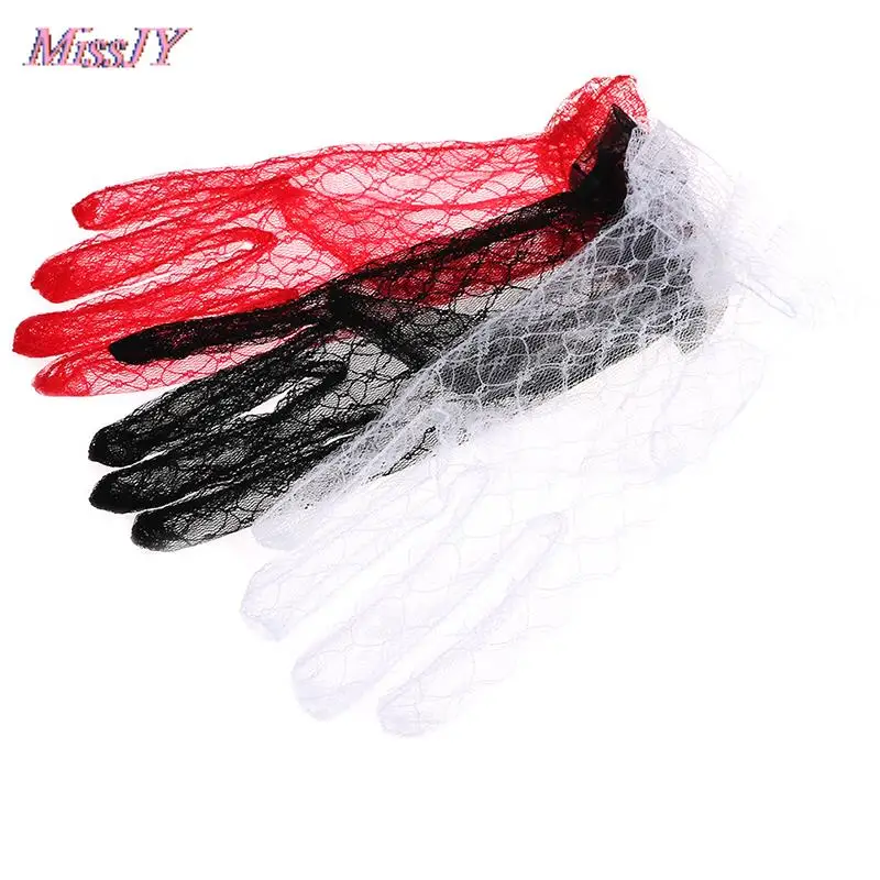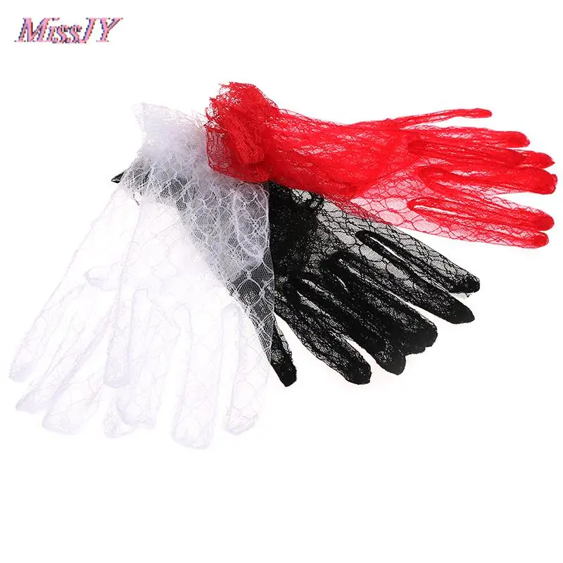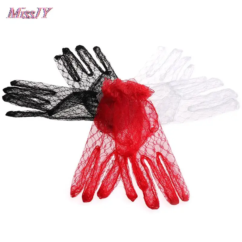 Черные Красные белый короткий цвет слоновой кости кружевные перчатки женские вечерние кружевные перчатки свадебные перчатки для свадебных принадлежностей