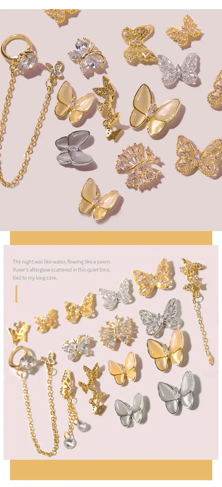 5 шт. подвеска-бабочка из сплава с цирконом, кристаллы для ногтевог...