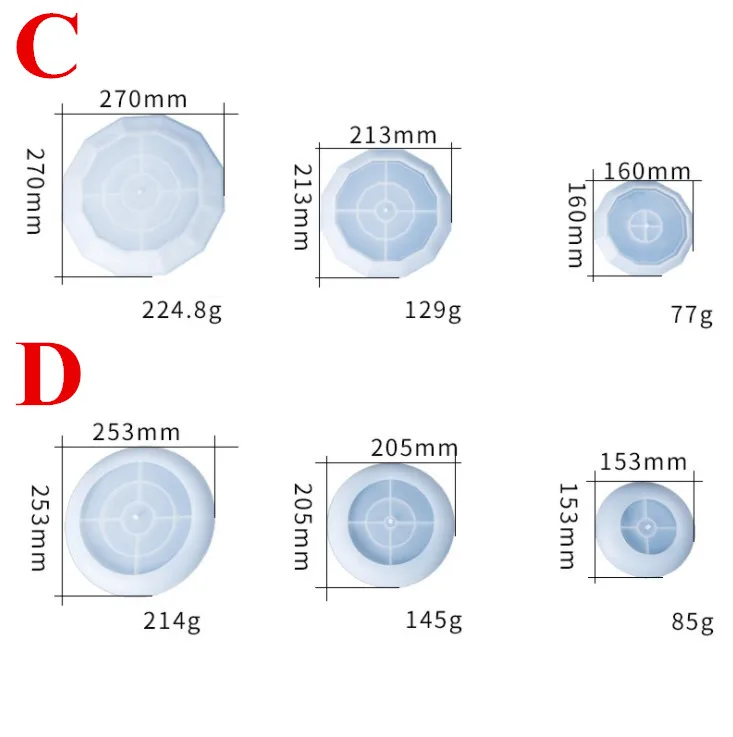Круглые формы для подставки из смолы, 3 шт., силиконовые формы для ...