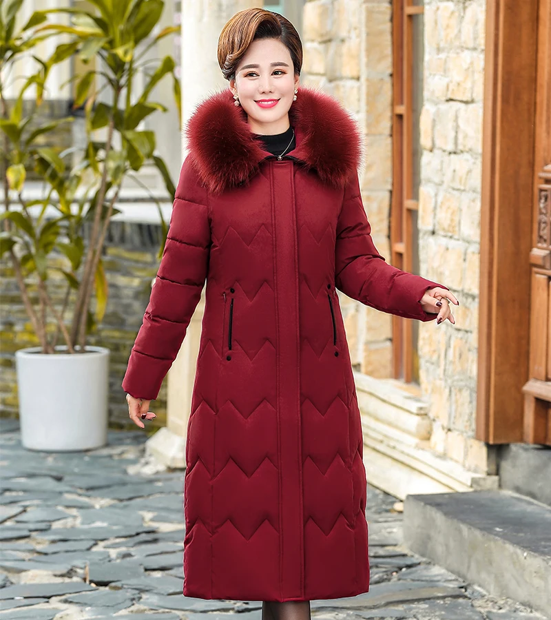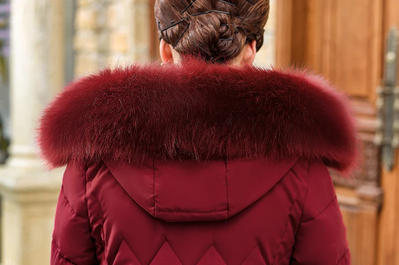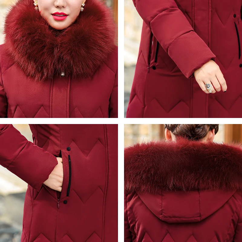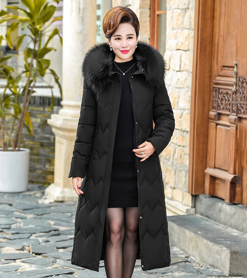 Женская Длинная зимняя офисная куртка, облегающие парки с капюшоном и хлопковой подкладкой, однотонное пальто с толстым меховым воротником для женщин