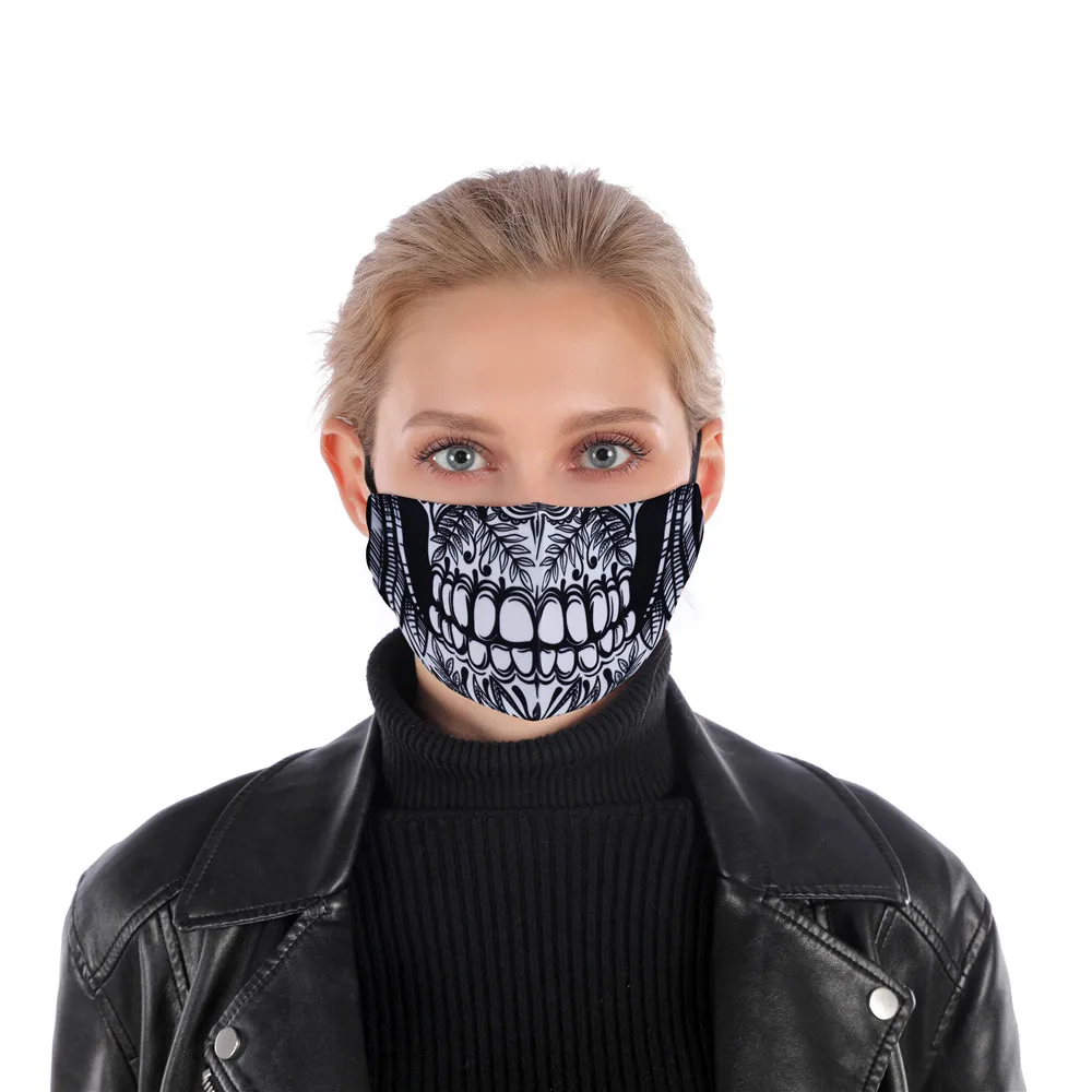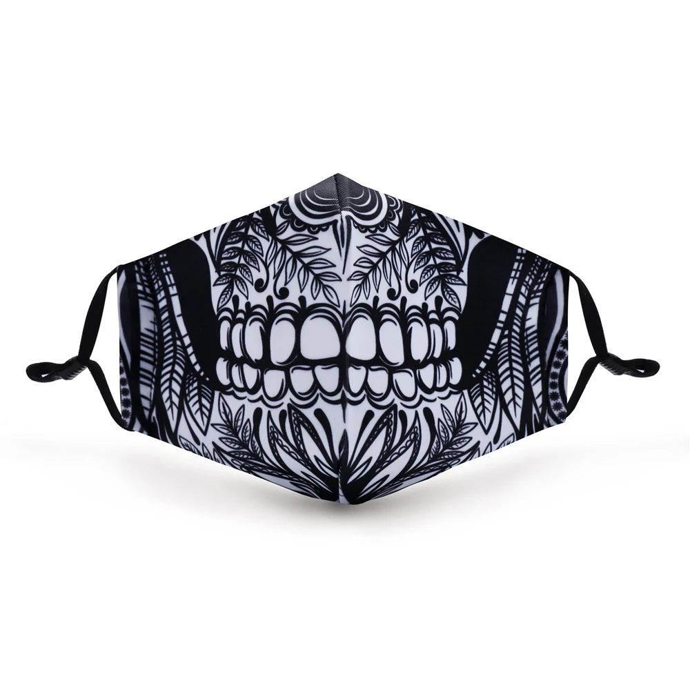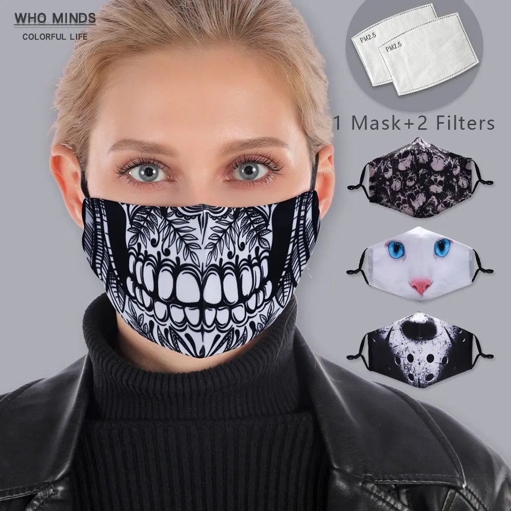 Стильная многоразовая маска с черепом на Хэллоуин, маска для лица с фильтром PM 2,5, маска с регулируемыми ремешками, моющиеся маски от пыли