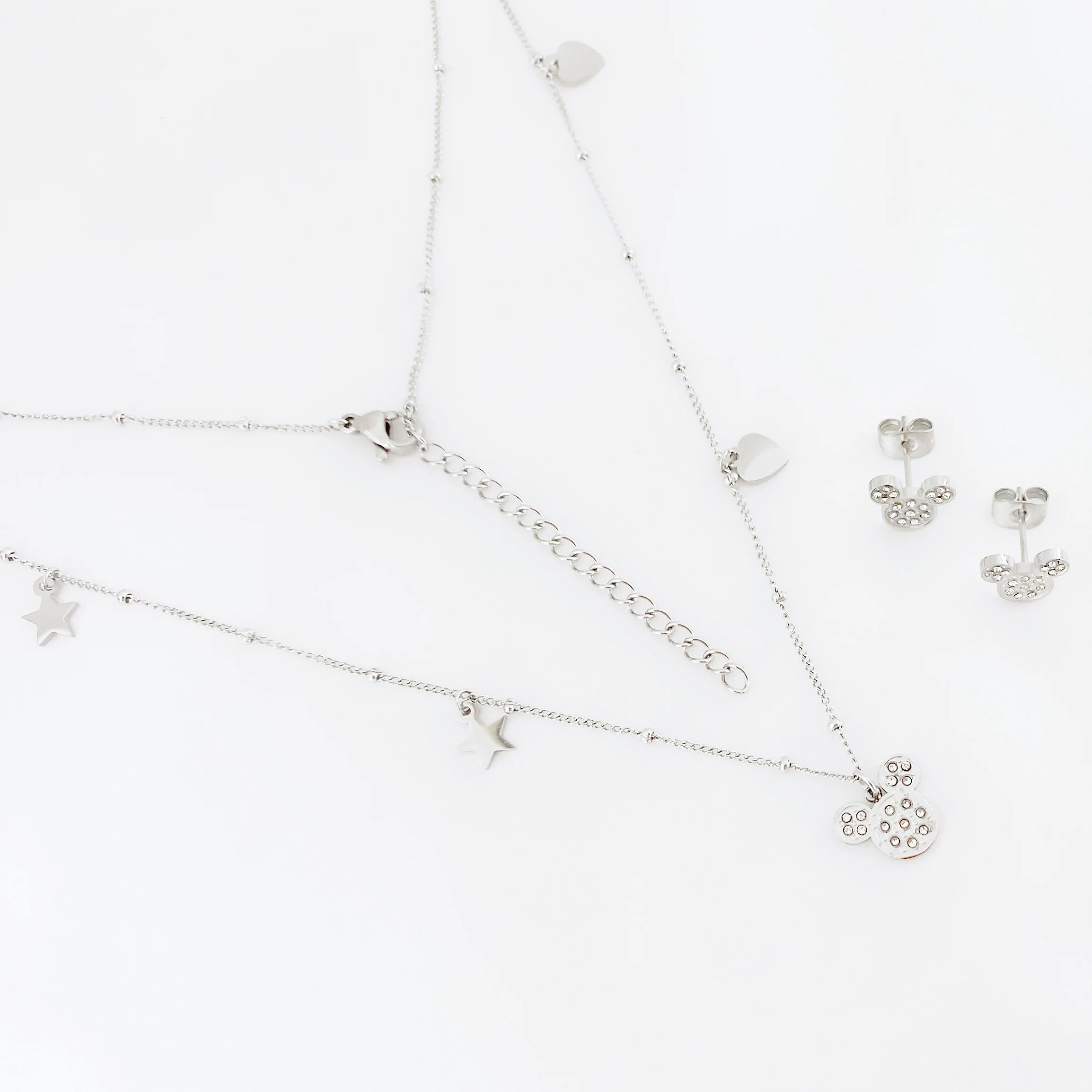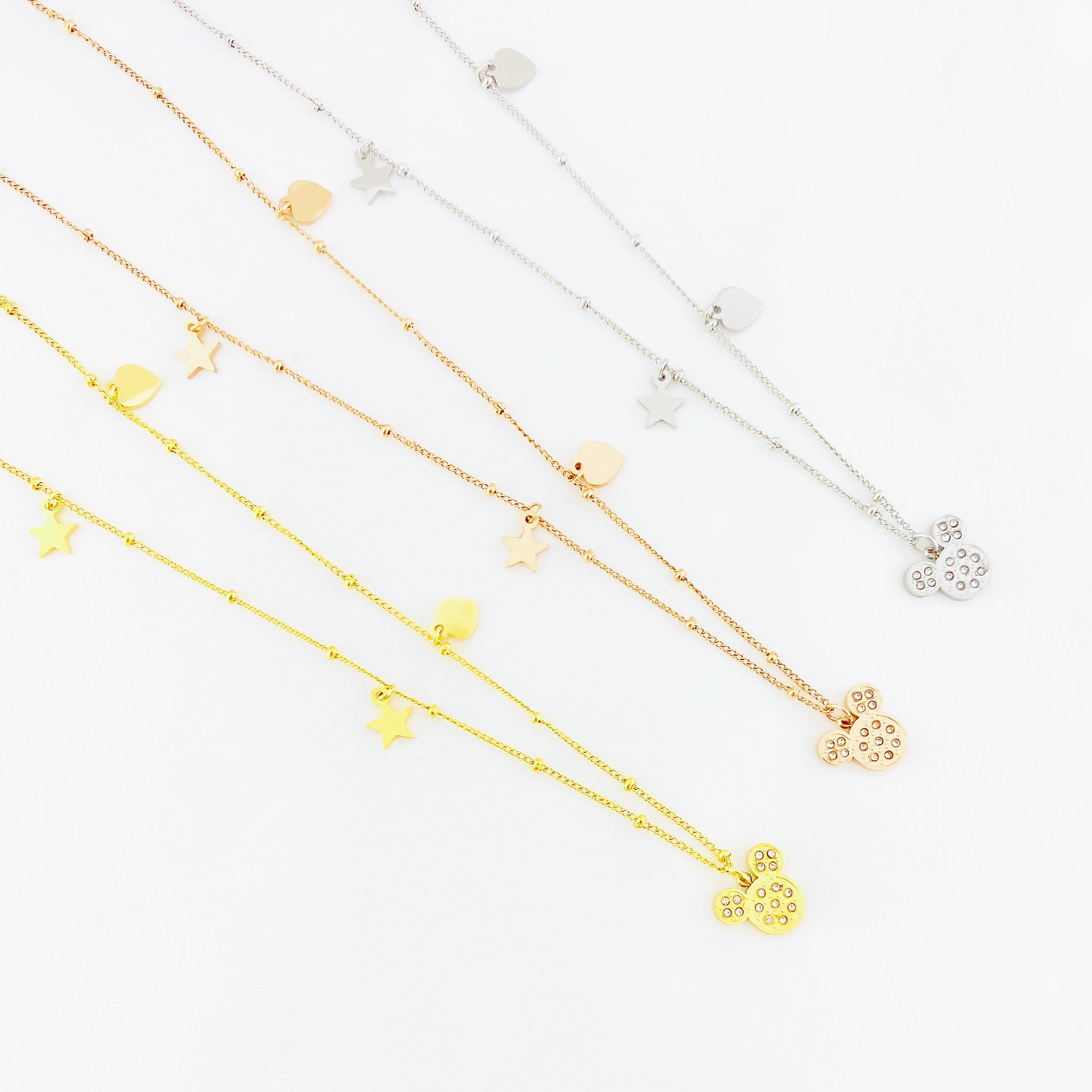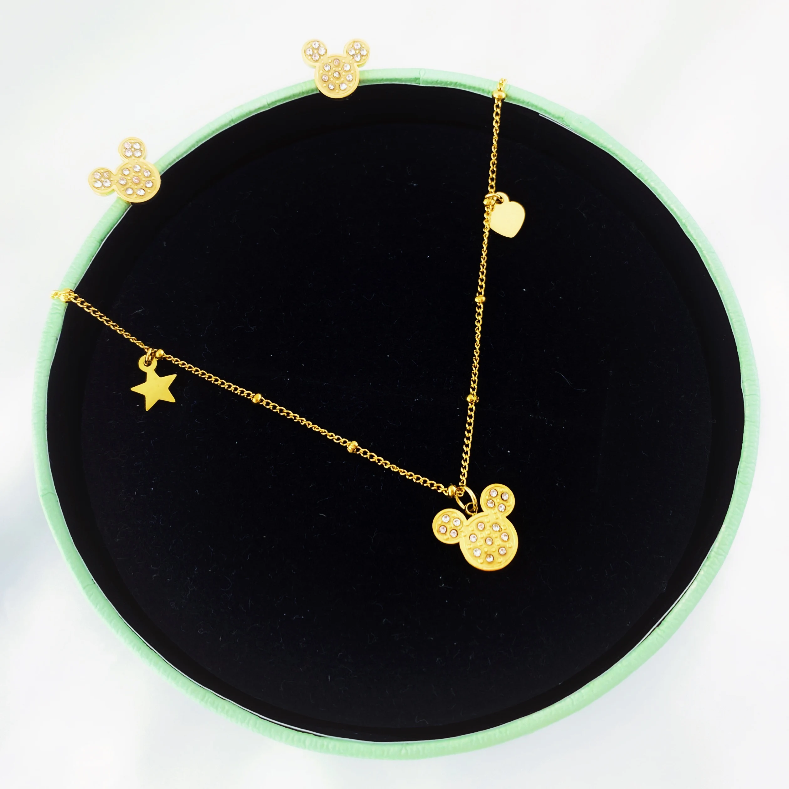 Кавайная одежда, с героями мультфильмов, для Подвеска мышь ожерелье титановая стальная цепь ожерелье инкрустированные с украшением в виде кристаллов; Модные трендовые женские ювелирные изделия подарок на день рождения