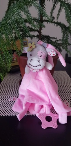 Выглядит очень хорошего качества и хорошо подходит для пробуждения ребенка. Различные текстуры, кольцо для прорезывания зубов и застежка для чашек. Я хотел бы узнать в описании, что он издает шум из-за текстуры ушей и маленького колокольчика.