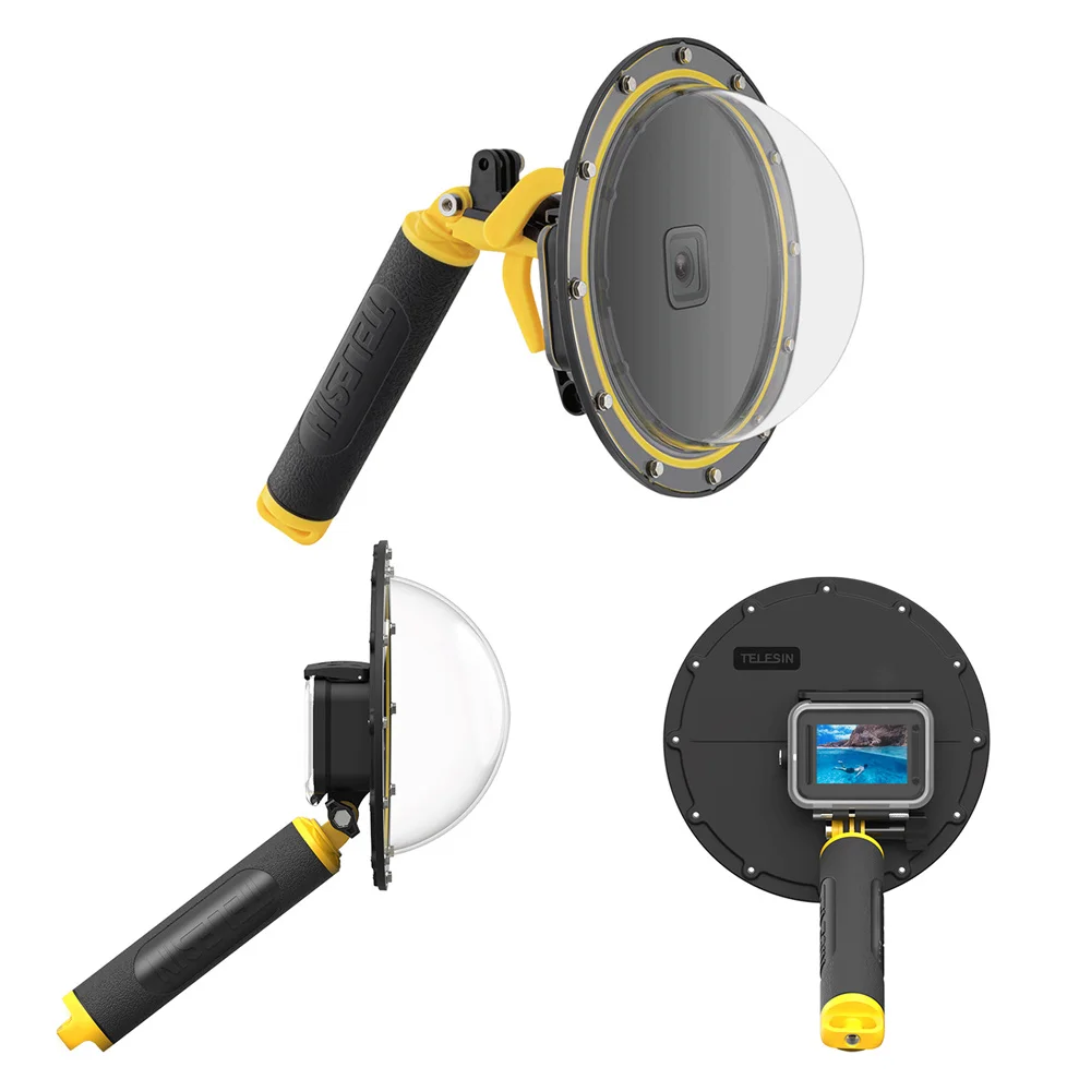 Купольный водонепроницаемый чехол TELESIN для дайвинга, чехол для GoPro Hero 10, 9, черный, для Hero 8, 7, 6, 5, с плавающим креплением, запчасти для камеры