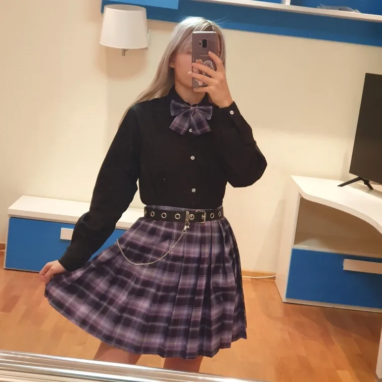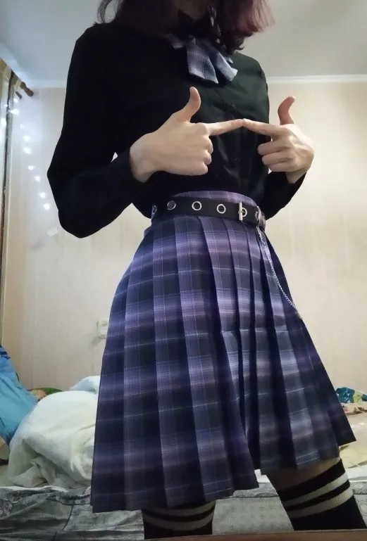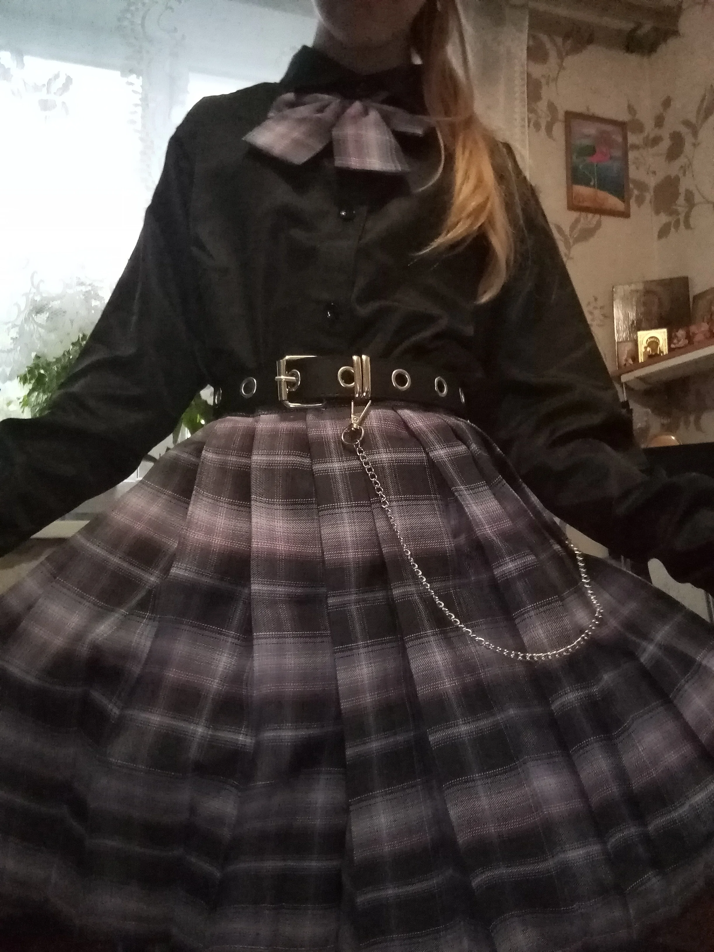 Были проблемы с тем, что продавец не отправлял некоторое время заказ, но когда написала ему он всё объяснил и отправил на следующий день Очень долго возилась с размерами, потому что не могла разобраться с размером рубашки, в итоге юбка оказалась большой, но с ремнём нормально