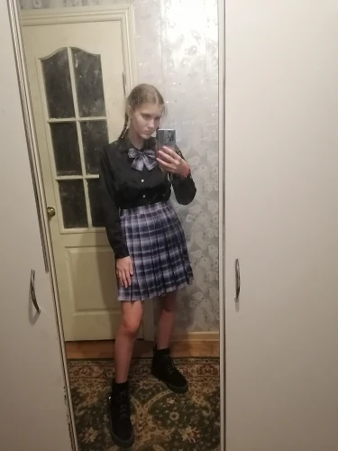 Очень хорошая юбка) пришла где-то за месяц - полтора, но уведомление не приходило долго, в итоге забрала только через 2 месяца. Юбка очень хорошая, попросила продовца положить вместо бантика галстук, положил) на мой рост 178 немного короткая. К сожалению из-за тонкой талии и грубой ткани(в хорошем смысле, не поднимется) полнит, делая бедра объёмнее. Рубашка подошла идеально) продавец общительный и приятный)
