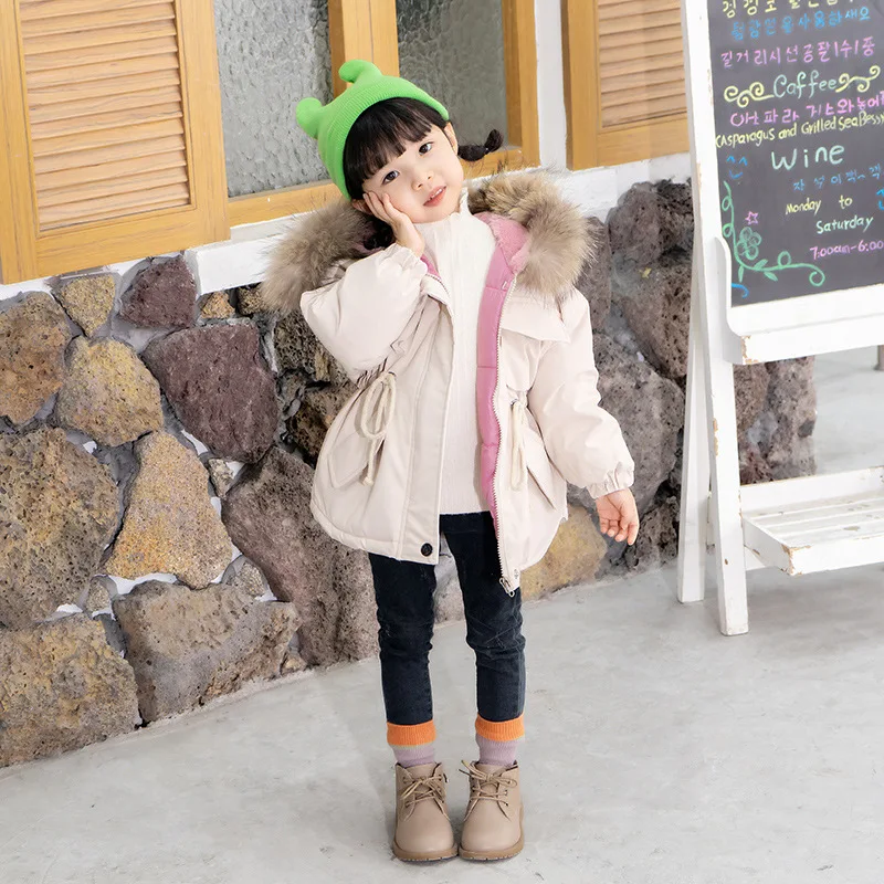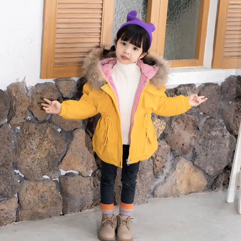 2021 Детская куртка для девочек с большим мехом теплая детская зимняя одежда с хлопковой подкладкой утепленное пальто с капюшоном для девочек с хлопковой подкладкой