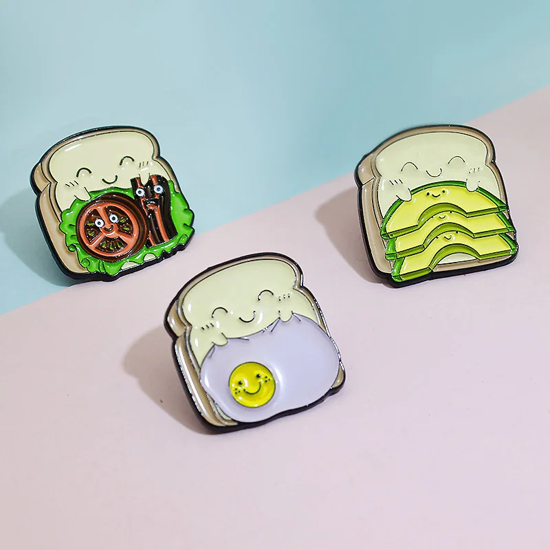 Булавки фрукты еда Хлеб Тост сэндвич баклажаны Персиковое пиво Броши Эмаль значок брошь подарок