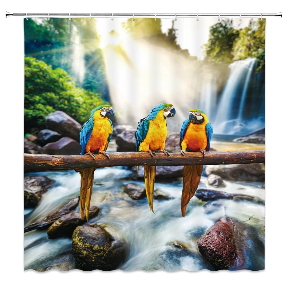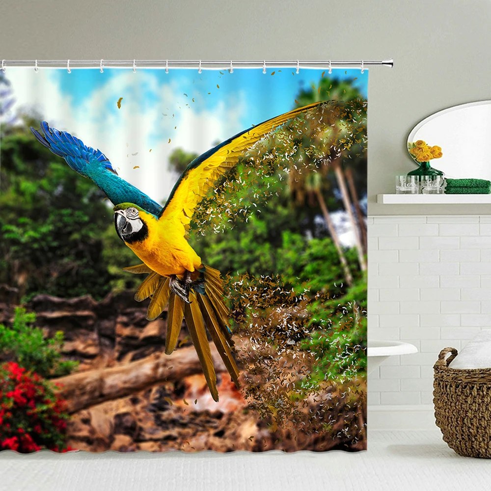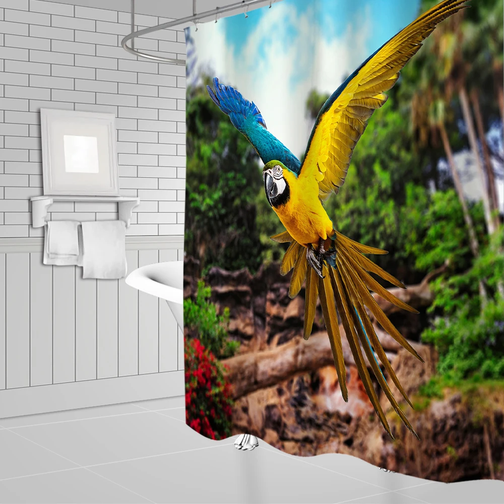Занавеска для душа с яркими птицами и попугаями, занавеска для ванны с 3d принтом, водонепроницаемая моющаяся ткань для ванной, занавеска для купания с крючками