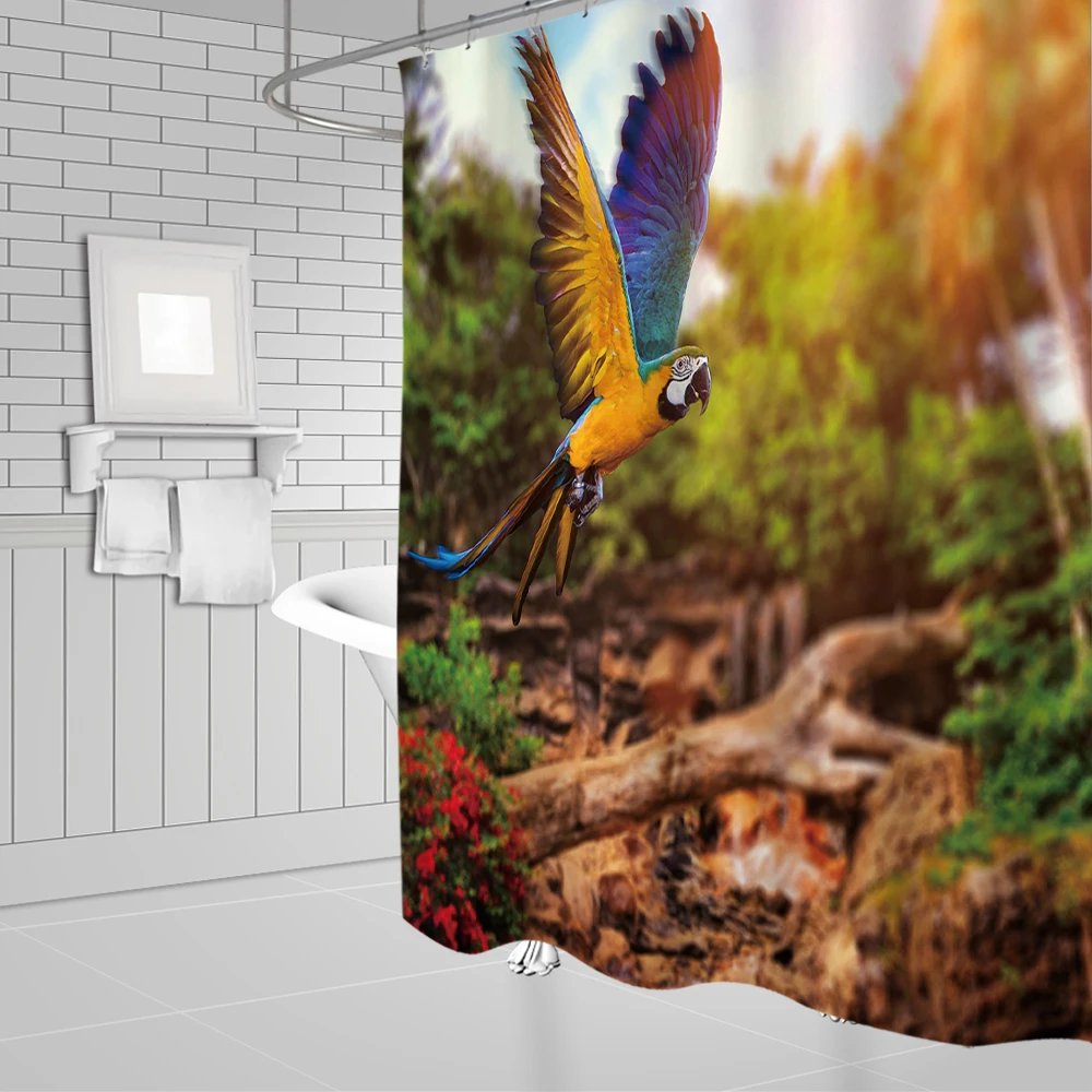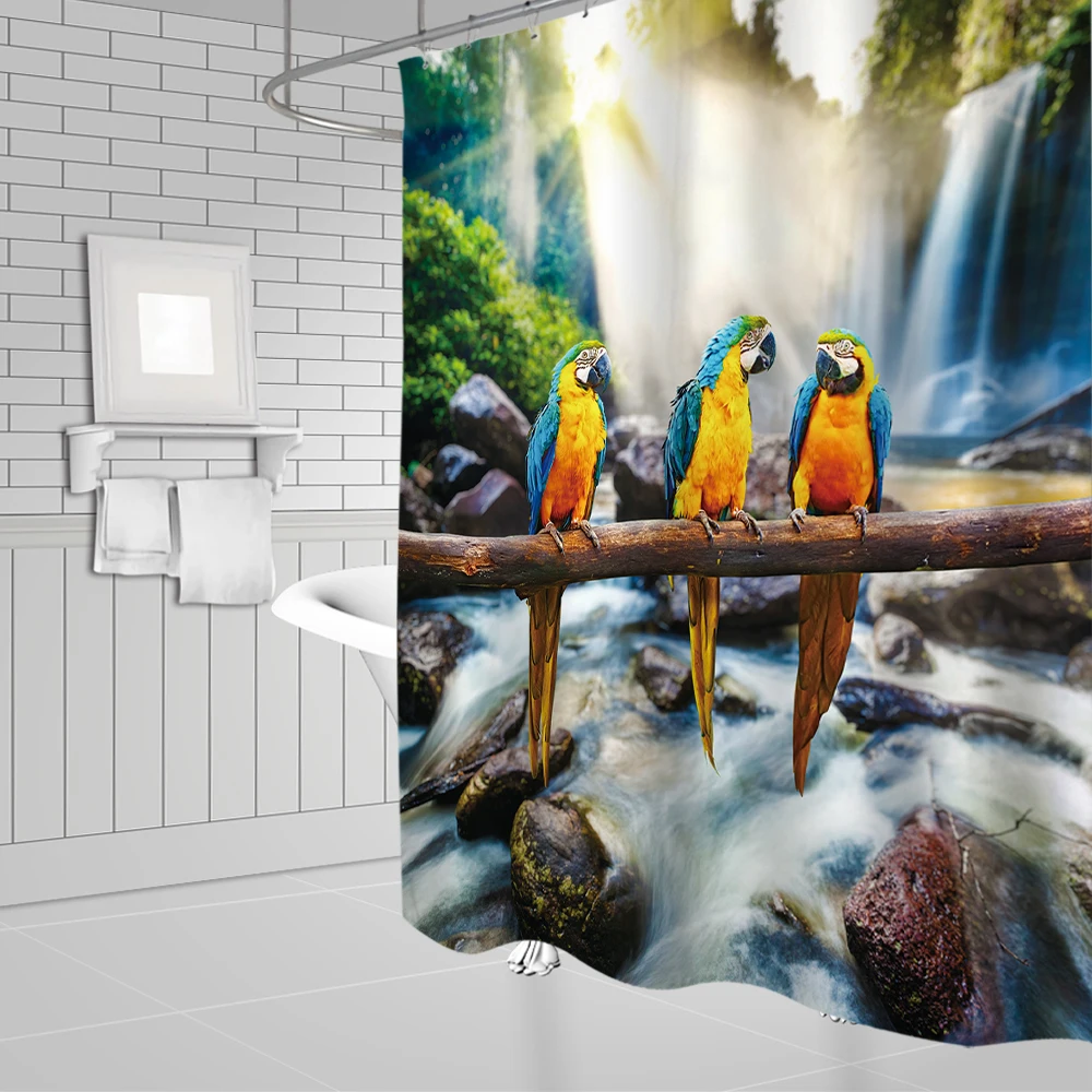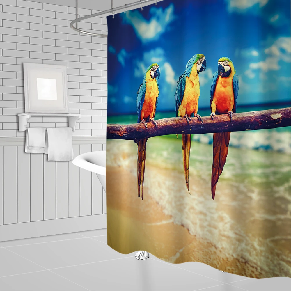 Цветные Птицы, попугай, занавески для душа, 3d принт, занавески для ванной, водонепроницаемые, для ванной, моющаяся ткань, занавески для купания, s с крючками