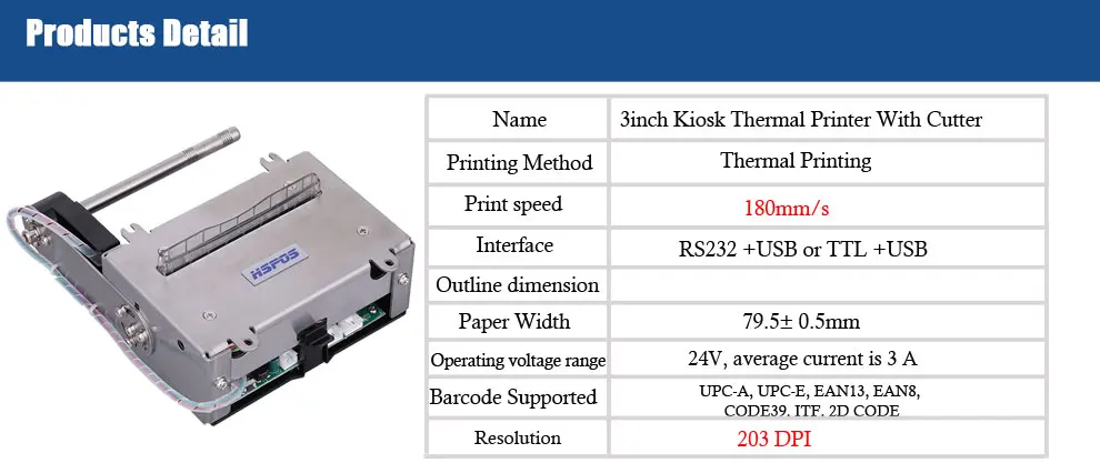 Высокая скорость печати 80 мм термальный киоск принтер с авто резцом с большим диаметром роликовая бумага HS-K33 icon star icon star icon star icon star icon star