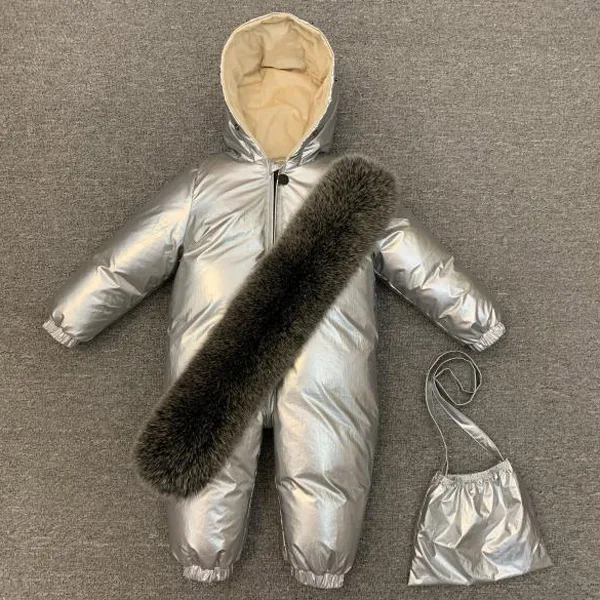 Детский пуховой комбинезон, зимняя Лыжная куртка с лисьим мехом