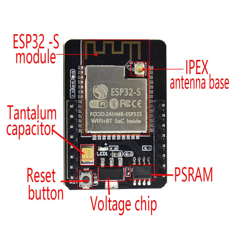 Низкомощный двухъядерный 32-разрядный процессор для прикладных процессоров Основная частота до 240 МГц, вычислительная мощность до 600 DMIPS Встроенный 520 КБ SRAM, внешний 4 м PSRAM Поддержка интерфейсов, таких как UART/SPI/I2C/PWM/ADC/DAC Поддержка камер OV2640 и OV7670, встроенная вспышка Поддержка загрузки изображения WiFi Поддержка tf-карты Поддержка нескольких режимов сна Встроенные Lwip и FreeRTOS Поддержка режима работы STA/AP/STA + AP Поддержка Smart Config/AirKiss в один клик распределительная сеть Поддержка вторичного развития