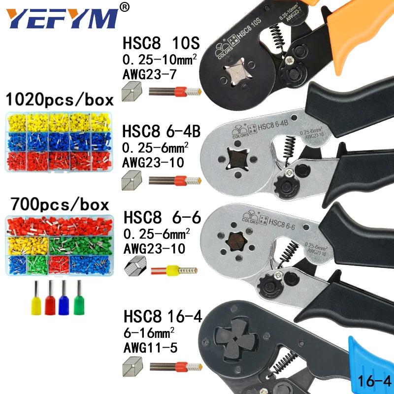Электрические обжимные инструменты, набор инструментов с плоскогубцами, трубчатыми клеммами, коробкой, мини-зажимом HSC8 10S 0,25-10 мм2 6-4B6-6 0,25-6 мм2 16-4