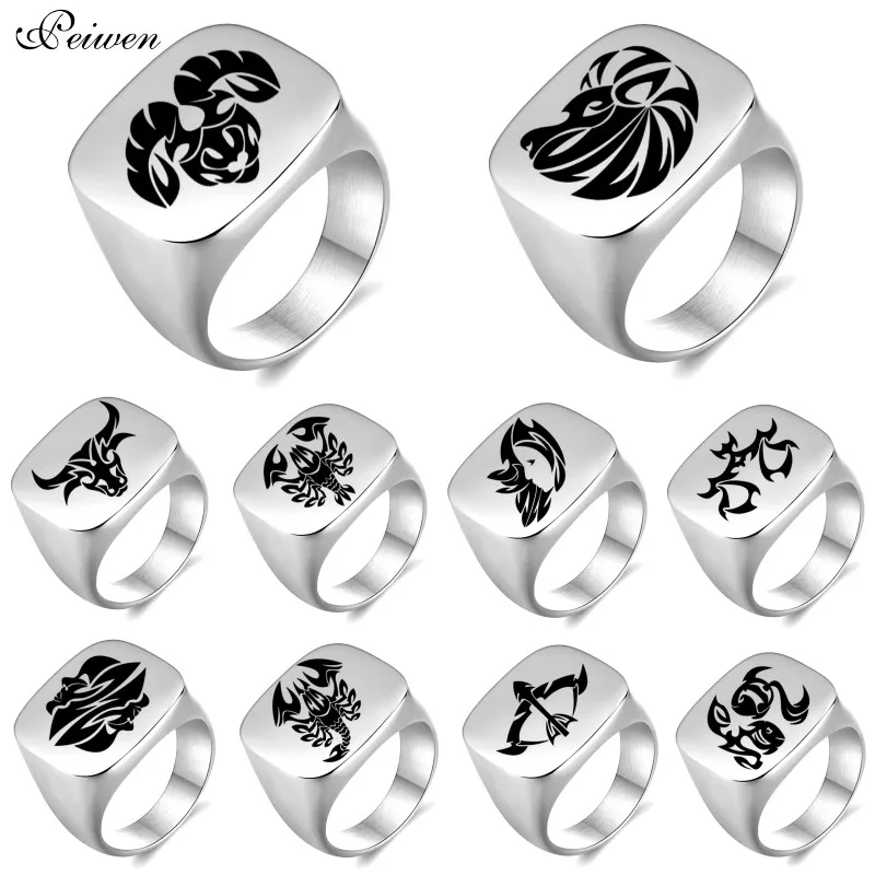 Кольцо Leo Libra Taurus Scorpio 12 из нержавеющей стали, квадратное кольцо созвездия, Знак зодиака, подарок на день рождения для мужчин и женщин