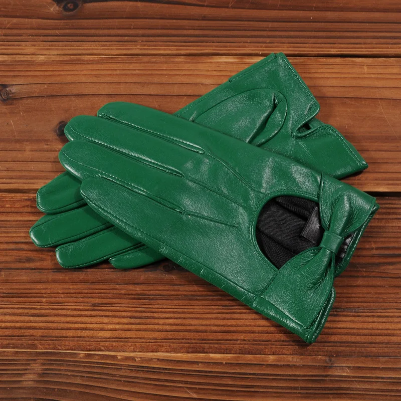 Женские зимние перчатки из натуральной козьей кожи, с бантом
