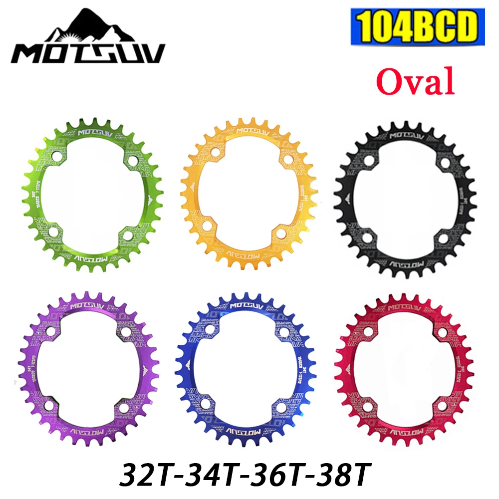 Передняя звезда для горного велосипеда MOTSUV 104BCD, овальная, узкая, широкая, 32T, 34T, 36T, 38T, кривошипная система с одним зубьем, детали 104 BCD