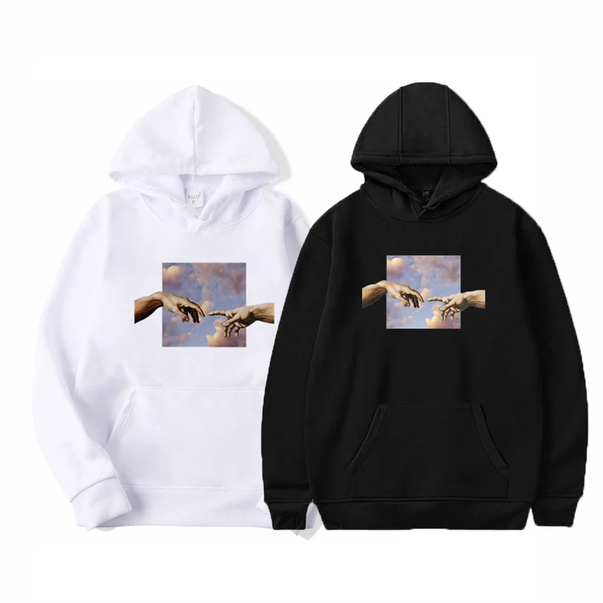 Женские художественные толстовки с капюшоном, повседневные толстовки с принтом в виде пальцев, большие размеры, Harajuku, худи с длинным рукавом, парные пуловеры с капюшоном