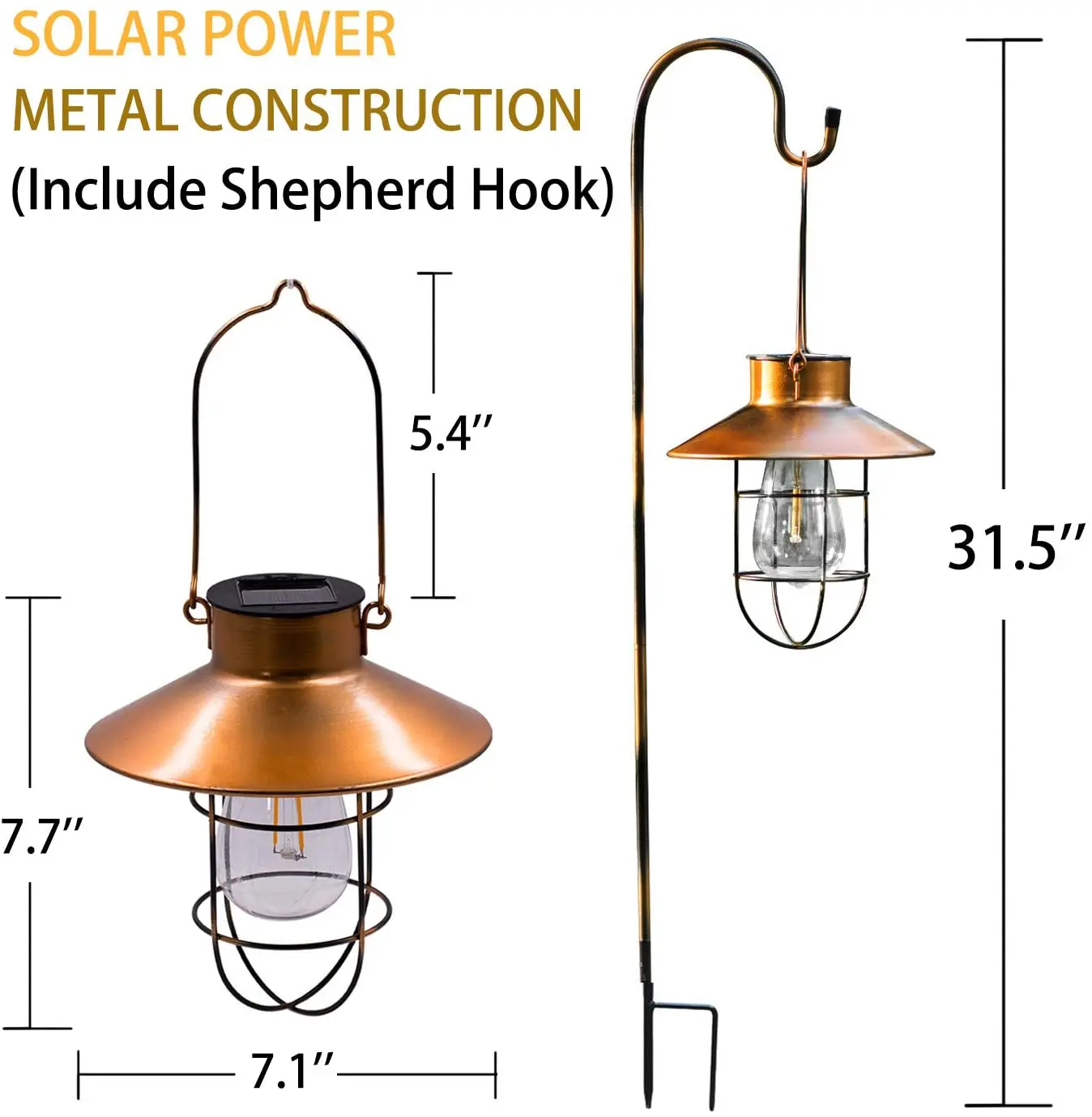 Подвесной фонарь на солнечных батареях, металлический, водонепроницаемый, с крючком