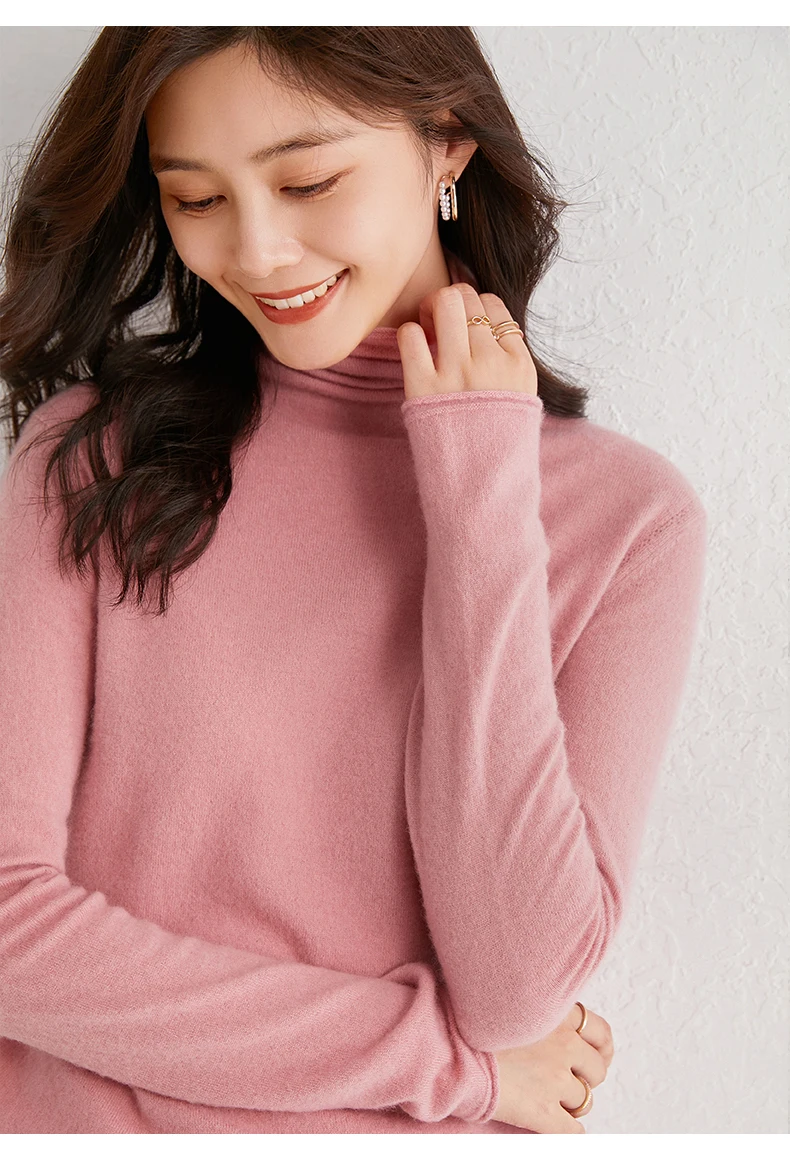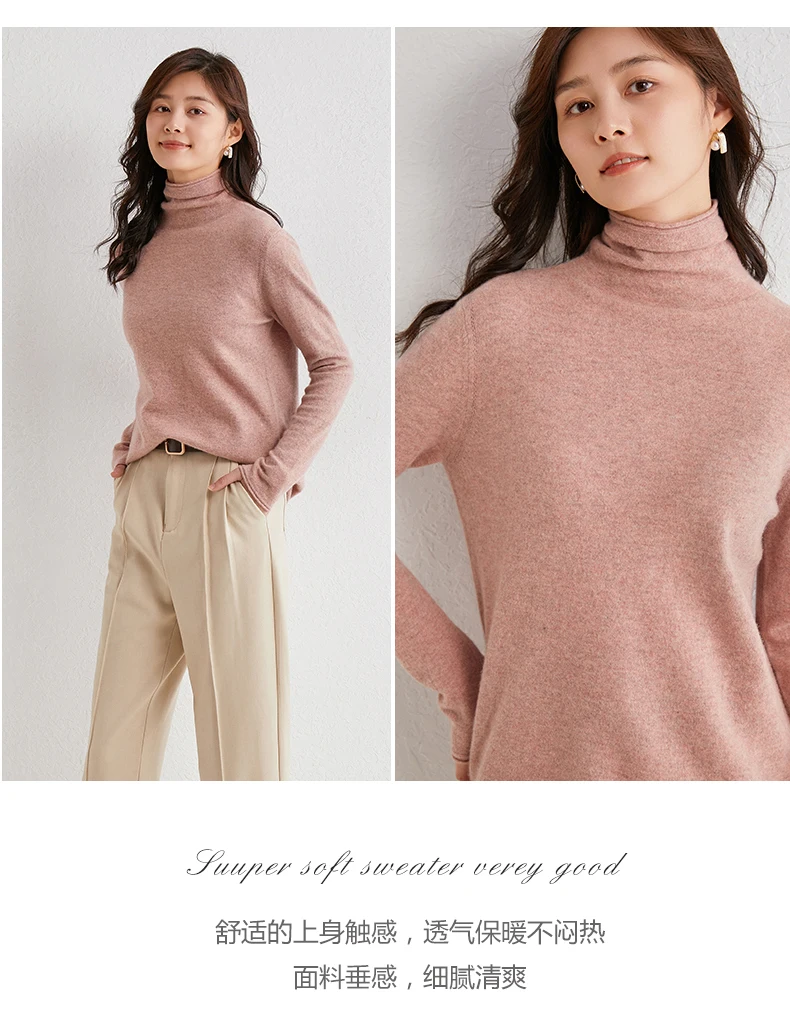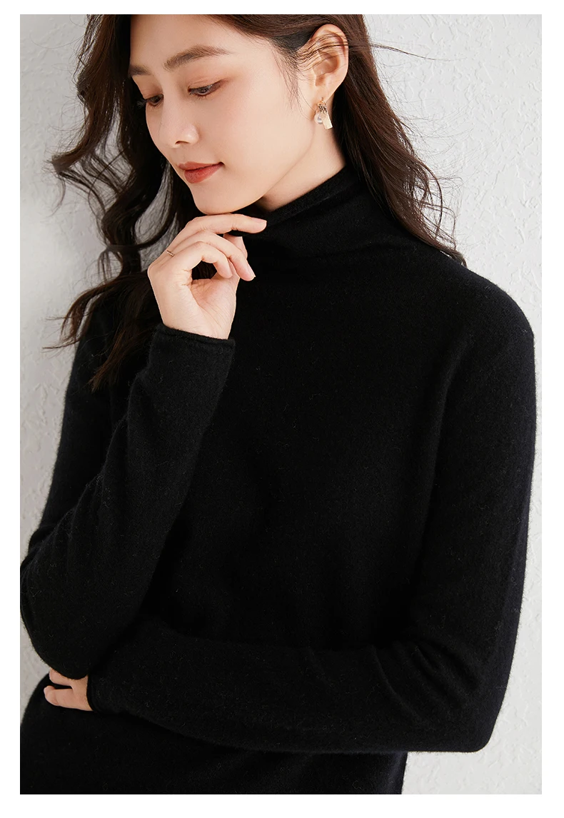 Пуловер женский вязаный из кашемира и шерсти, 12 цветов, с высоким воротником и длинным рукавом, мягкий и теплый