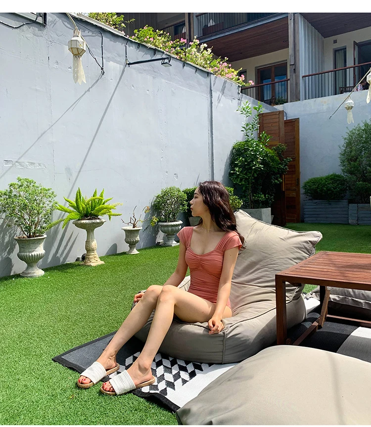 Слитный купальник в Корейском стиле, Женский однотонный купальник с...