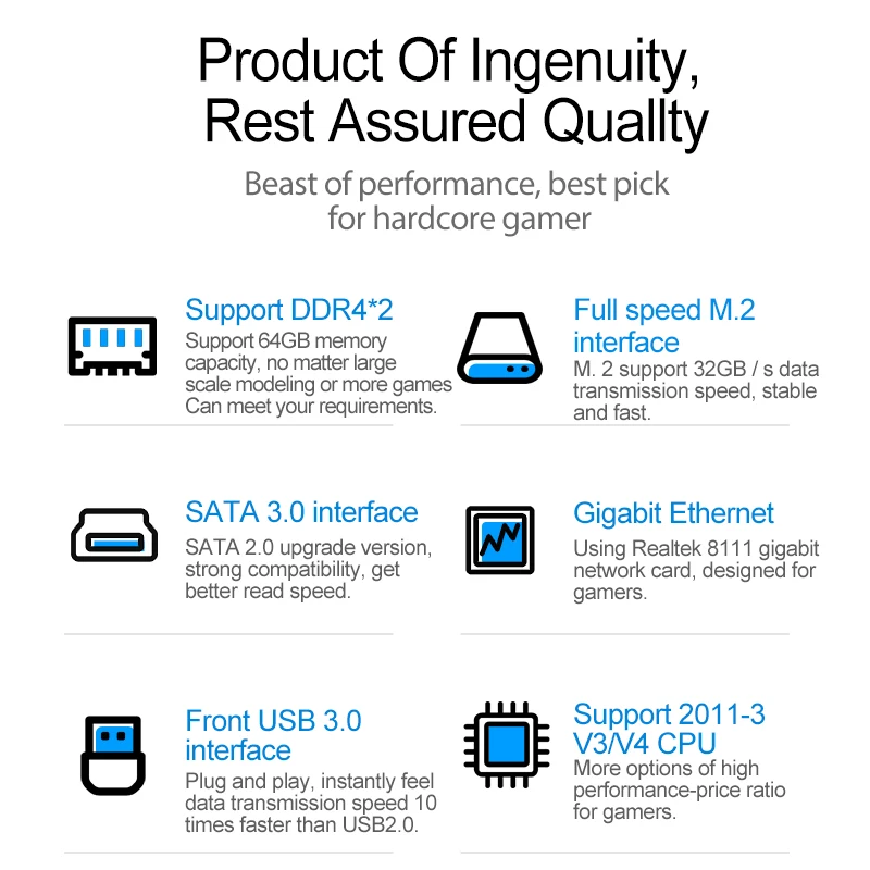 Из-за различных производственных партий могут быть некоторые различия между изображениями, которые вы видите, и продуктами, которые вы получаете, например, упаковочная коробка, цвет DIMM слотов, SATA портов, PCI или PCI-E слоты и другие порты, при условии изменения, без уведомления. Одна вещь, конечно, заключается в том, что мы никогда не поставим под вопрос качество продукции.