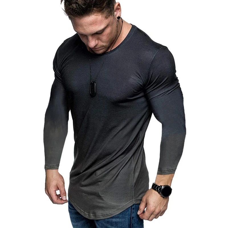 Градиентные Цветные 3D футболки с принтом, быстросохнущие Компрессионные Мужские футболки с длинным рукавом, футболки для фитнеса, облегающие футболки, топы для мужчин