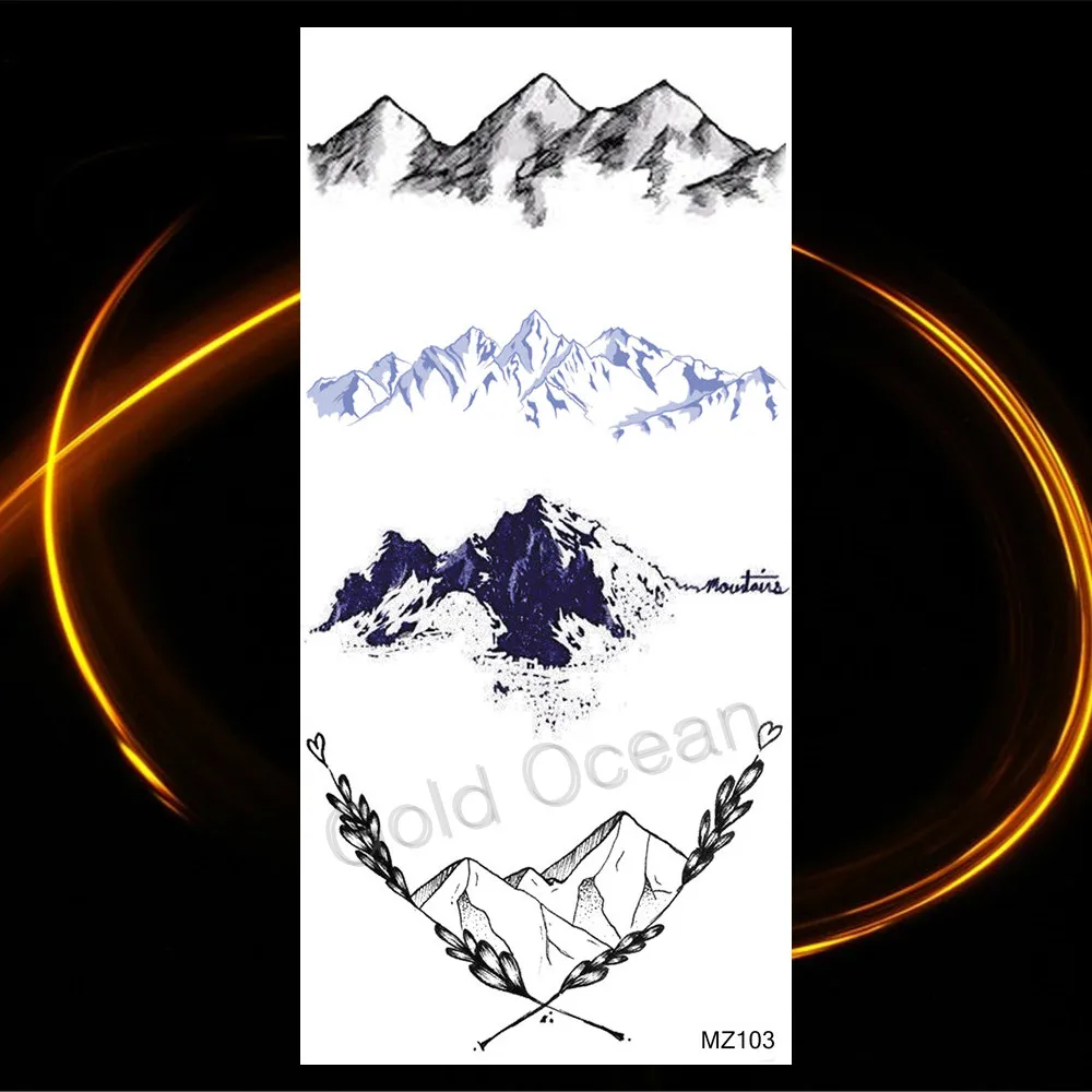Временные татуировки с изображением горы для мужчин, женщин, мужчин, черных, черных холмов, пиков, татуировки, наклейки, геометрия, морская волна, дерево, фальшивые татуировки, минималистичные руки
