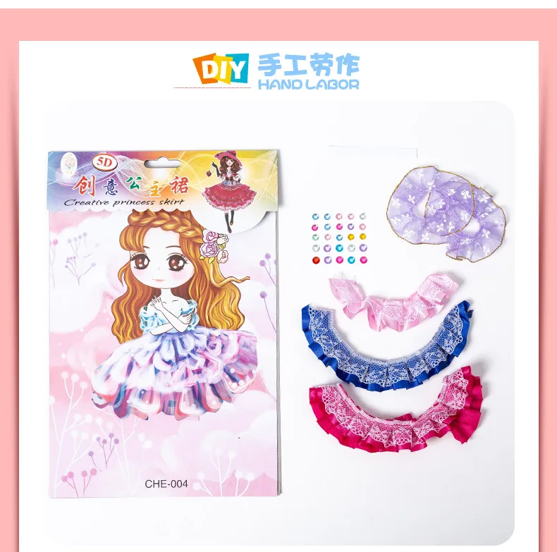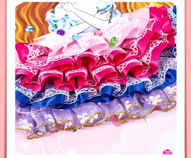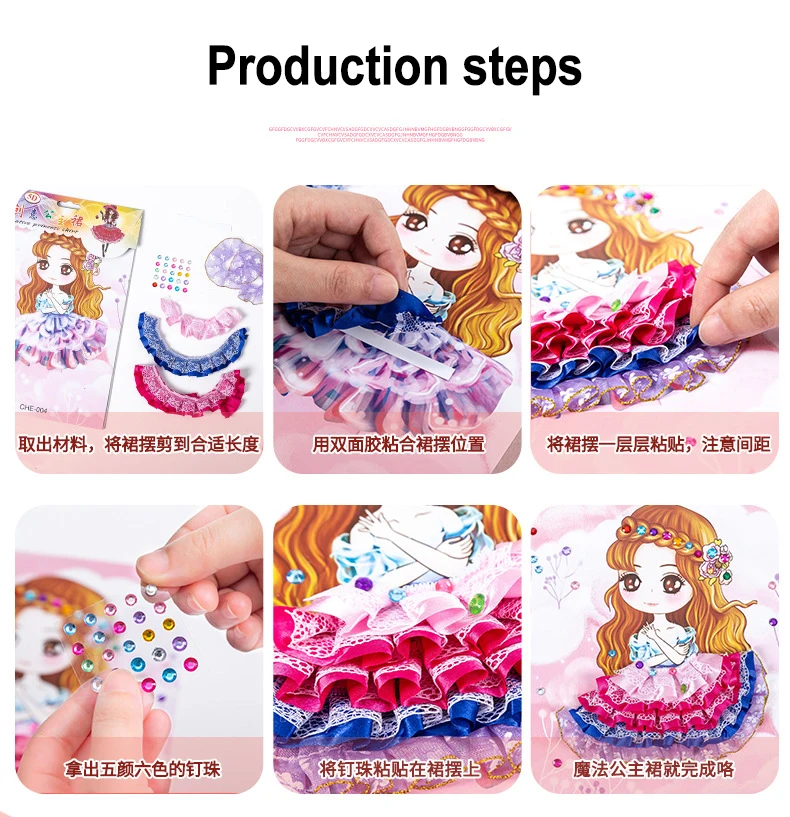 1. Выньте материал и отрежьте юбку до соответствующей длины 2. Используйте двустороннюю ленту, чтобы приклеить положение юбки 3. Приклейте юбку слой за слоем 4. Выньте кристалл алмаза 5. Наклейте Кристальный бриллиант на юбку 6. Готовая