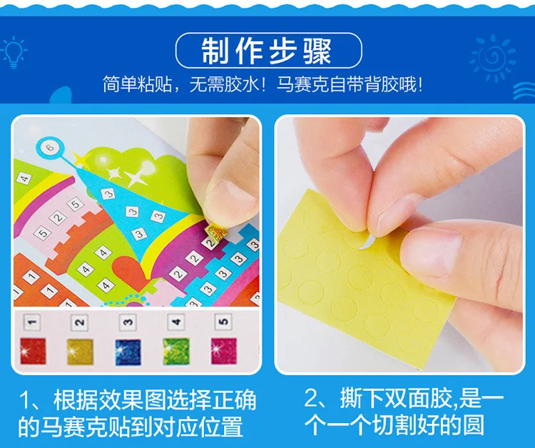 Название продукта: красочные алмазные наклейки Категория продукта: ручная работа Вес изделия: 288 г Аксессуары: Цветная Мозаика, яркий бриллиант, цветная карта Подходит для детей 3 лет и старше