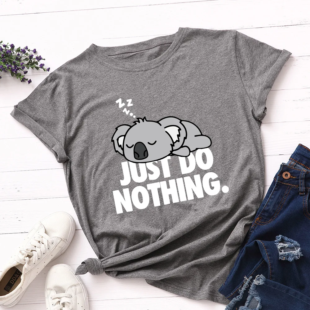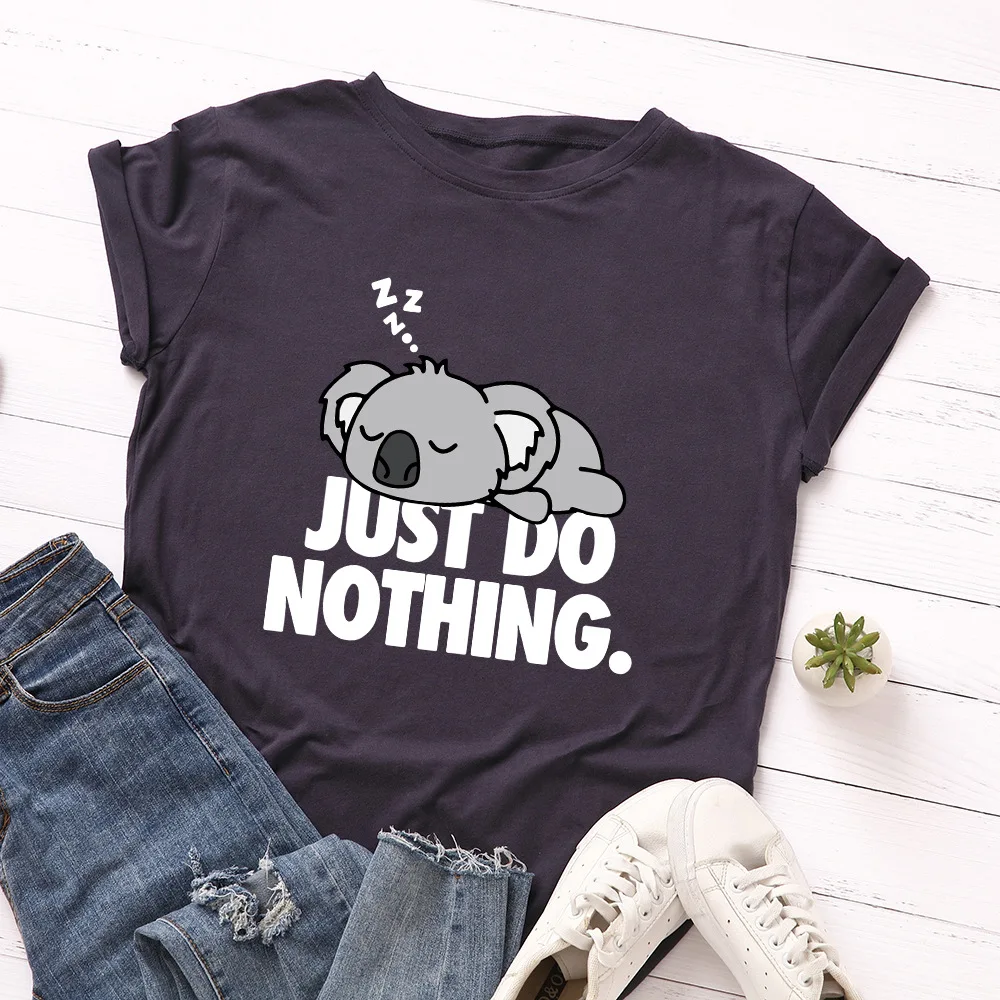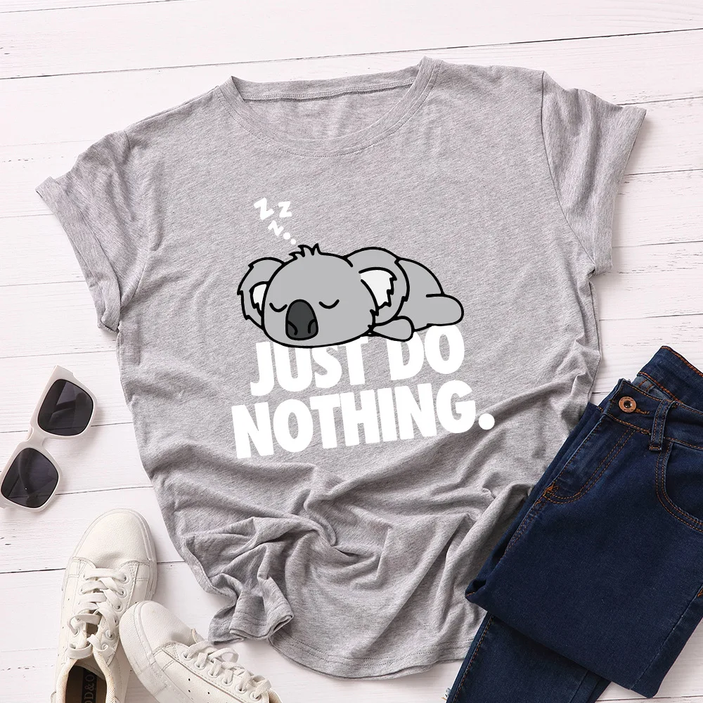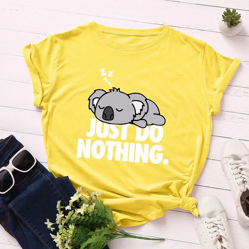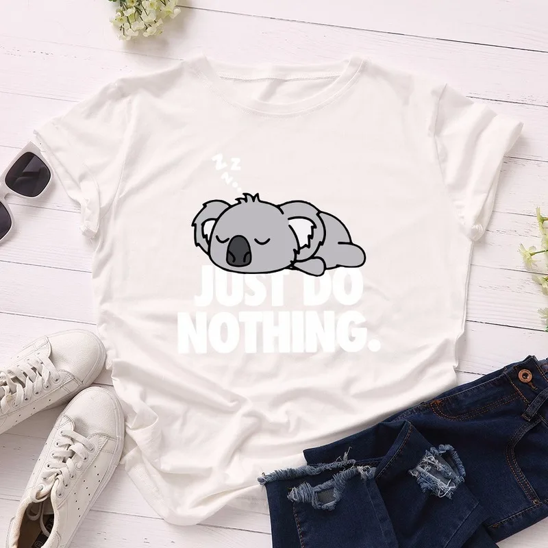 Футболка JCGO Женская в стиле оверсайз с коротким рукавом, 100% хлопок, размера плюс с милым принтом коалы, повседневный топ с круглым вырезом, на лето