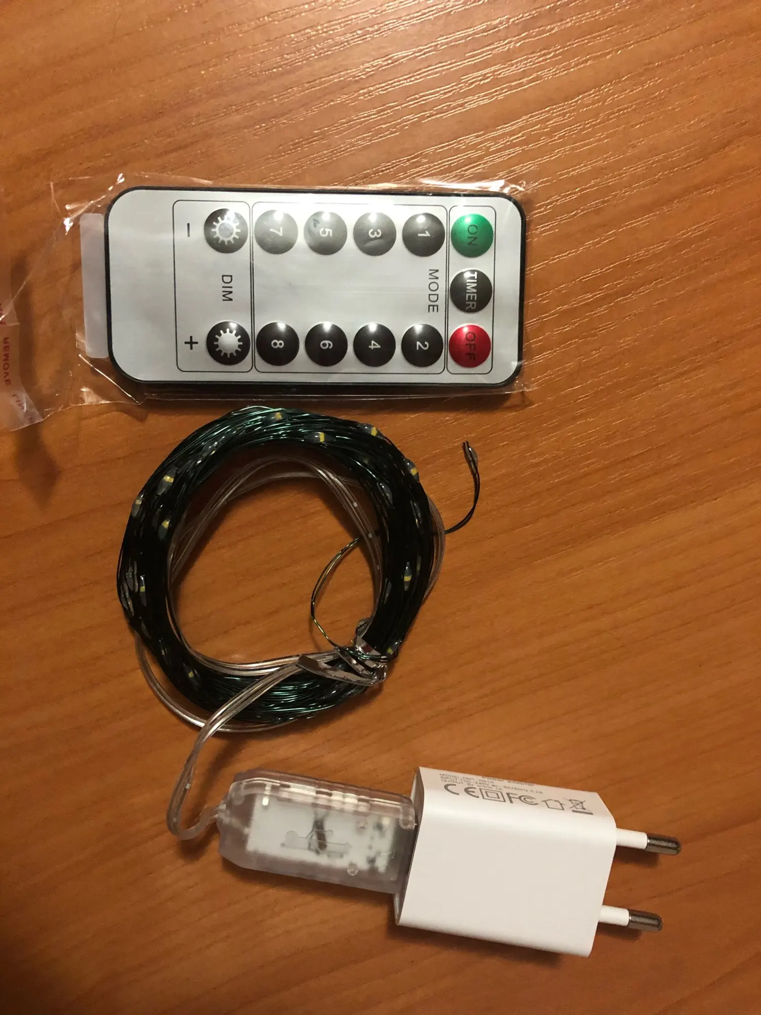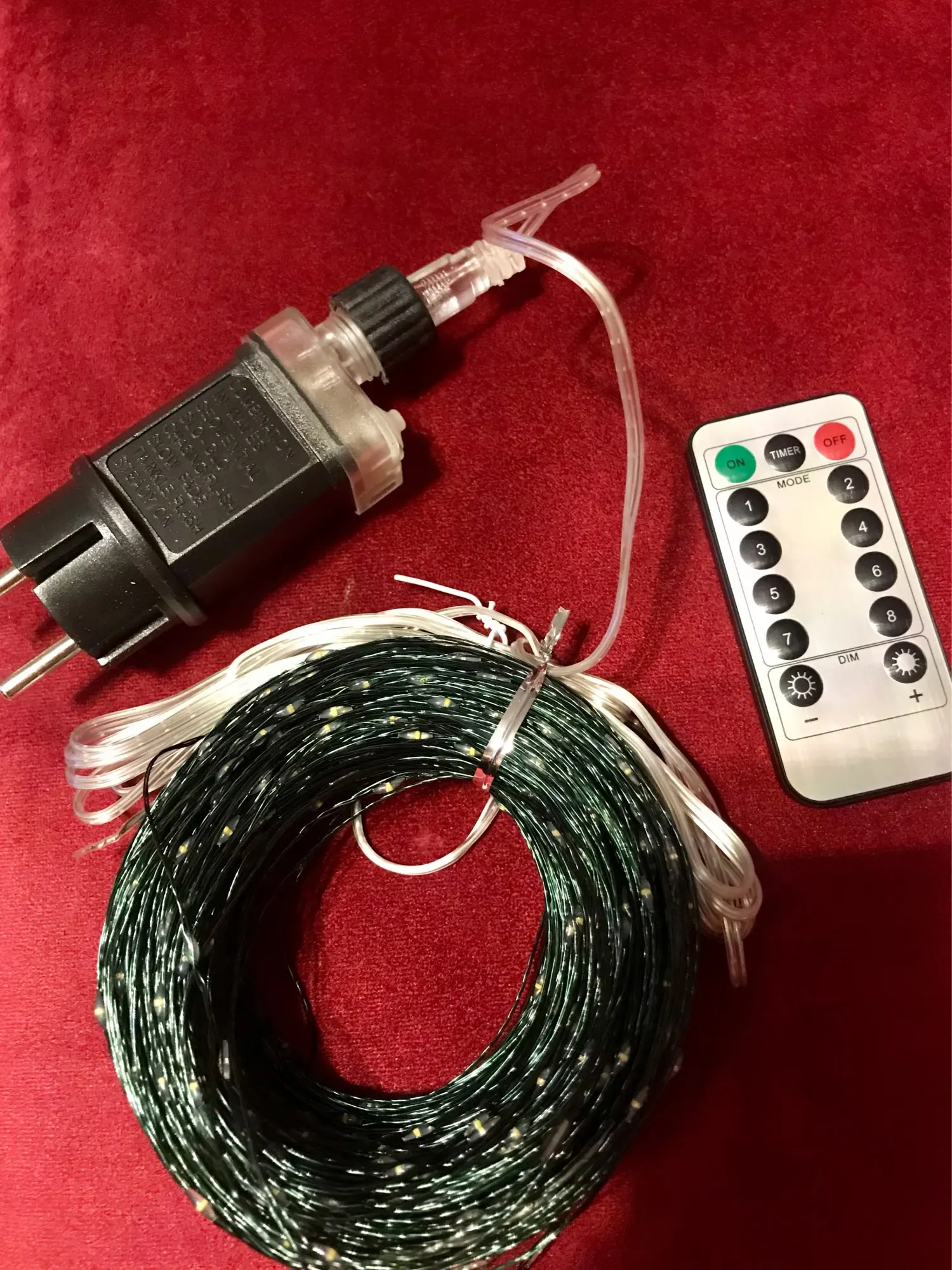 Доставка 1,5 недели до МО. Упакована хорошо, работает, режимы ок. Светит не очень ярко, но очень мягко и приятно глазу. Воняет, но не сильно. Пульт без батарее, если не рабочий дополню отзыв. На самой вилке есть кнопка переключения режимов. Разматывать буду уже под 2022.