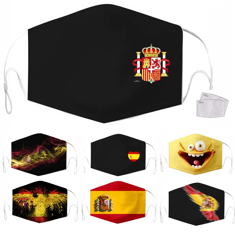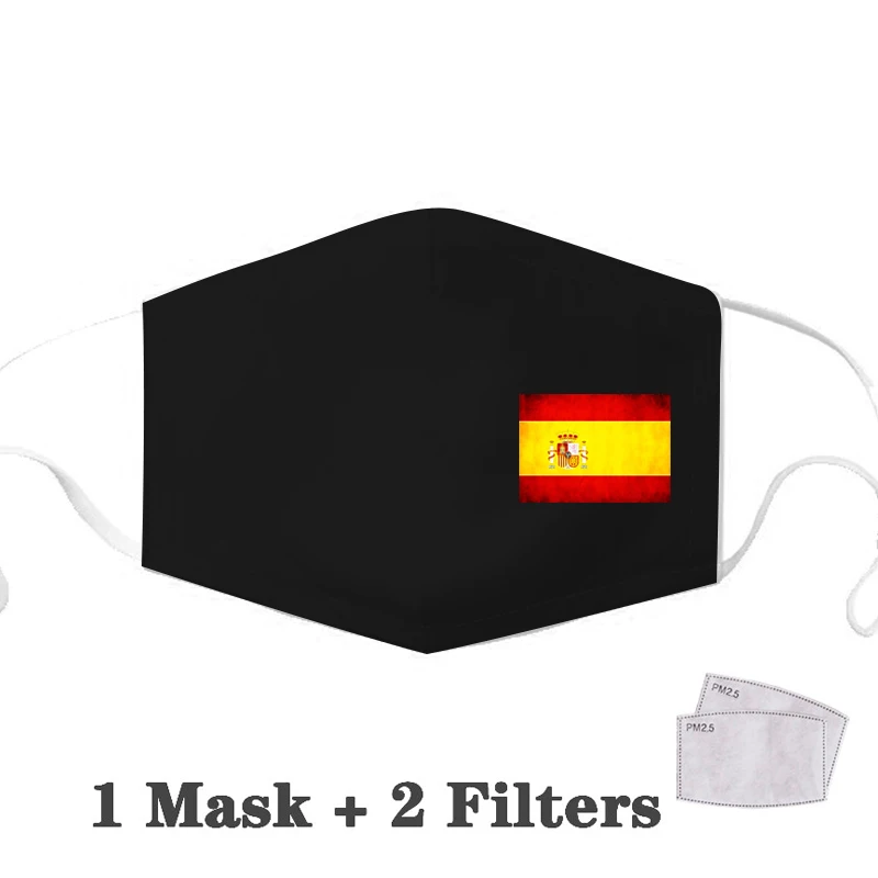 Испанская национальная моющаяся многоразовая маска для лица с 2 фильтрами, черные маски, противоинфекционная противогаз, флаг Испании