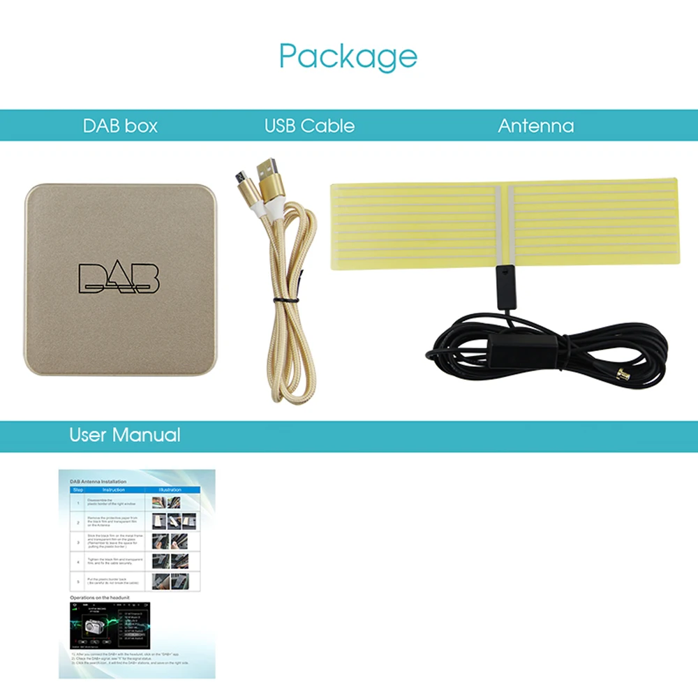Что такое DAB +?DAB является вещанием третьего поколения после традиционного аналогового вещания AM/FM цифрового аудио вещания. DAB +-это усовершенствованная версия оригинальной технологии DAB. Он также может быть совместим с DAB. Новый радиостандарт DAB: цифровое аудио-вещание позволяет вам многоуровневую музыку с вашими местными известными и также новыми каналами. CD качество звука и отсутствие шума в отличной передаче делают DAB Radio особенным опытом в транспортном средстве. DAB + (цифровое аудио вещание) постепенно заменил традиционную аналоговую трансляцию AM/FM. Постоянное увеличение каналов и расширение площади станции в скором времени делают DAB доступным для большинства стран Европы.Особенности:* Если ваш android 5,1 и выше автомобильный мультимедиа предварительно установлен DAB + App, просто купите этот USB powered DAB + Box, чтобы получить цифровое радио.* Он подходит для мультимедийных устройств Erisin android и большинства других устройств Android 5,1 и выше на рынке.* Включенная антенна усовершенствована с усиленной функцией, высокой чувствительностью, Используйте порт MCX для подключения.* Подключи и работай, USB порт питания для DAB + коробка и соединительная антенна, не нужен дополнительный кабель питания.* Тонкий дизайн, с 1 метровым usb-адаптером, кабелем питания и 3 метровым антенным кабелем, достаточно долго для установки.Как работать на DAB + box?1. После подключения DAB + к автомобильному мультимедиа (через стандартный порт USB), перезагрузите мультимедиа автомобиля и нажмите на приложение «DAB +» (это должно быть установлено заранее).2. Проверьте сигнал DAB +, посмотрите верхний левый угол для состояния сигнала.3. Нажмите на значок поиска, он будет найти DAB + станций, и сохранить на правой стороне.Примечание:1. Автомобильный мультимедиа должен поддерживать функцию DAB.2. Автомобильный мультимедиа должен быть оснащен системой Android (Android 5,1 и avove).3. Приложение DAB должно быть предварительно установлено.4. Из-за относительно короткой зоны покрытия сигналов DAB некоторые области могут найти меньшее количество радиопрограмм.5. Подходит только для стран, у которых есть DAB сигнал: Австралия, Бельгия, Чехия, Дания, Франция, Германия, Gibraltar, Гонконг, Китай, Ирландия, Италия, Kuwait, Malta, Monaco, Нидерланды, норвегия, Польша, Словения, Корея, Испания, Швеция, Швейцария, Великобритания.6. Если предварительно установленное приложение автомобиля или приложение DAB, загруженное с Google Market, не совместимо, пожалуйста, свяжитесь с нами, чтобы получить файл APK.Частотная Таблица DABПолоса III5A 174,928 МГц 7C 192,352 МГц 10A 209,936 МГц 12C 227,360 МГц5B 176,640 МГц 7D 194,064 МГц 10B 211,648 МГц 12D 229,072 МГц5C 178,352 МГц 8A 195,936 МГц 10C 213,360 МГц 13A 230,784 МГц5D 180,064 МГц 8B 197,648 МГц 10D 215,072 МГц 13B 232,496 МГц6A 181,936 МГц 8C 199,360 МГц 11A 216,928 МГц 13C 234,208 МГц6B 183,648 МГц 8D 201,072 МГц 11B 218,640 МГц 13D 235,776 МГц6C 185,360 МГц 9A 202,928 МГц 11C 220,352 МГц 13E 237,488 МГц6D 187,072 МГц 9B 204,640 МГц 11D 222,064 МГц 13F 239,200 МГц7A 188,928 МГц 9C 206,352 МГц 12A 223,936 МГц7B 190,640 МГц 9D 208,064 МГц 12B 225,648 МГцХарактеристики:Номер модели: DAB 004Рабочая температура: -20 ℃ ~ + 70 ℃Источник питания: usb-порт 5 ВЧастотный диапазон: 174-240 МГцРазделение канала: 55 дБРазница в канале: +/-3 дБВходное сопротивление: 50 ΩТип входного сигнала антенны: MCXДлина USB адаптер Мощность кабеля: 1,0 мДлина усиленных антенный кабель: 3,0 мЦвет: черныйГлавный пункт Размеры: 4,5*4,5*1,3 см/1,77*1,77 * 0.51inОсновной вес изделия: 18 г/0,65 унцийПосылка Размеры: 17,3*13,5*5,0 см/6,81*5,31 * 1.96inВес посылка: 166 г/5,85 унцийПосылка:1 * DAB