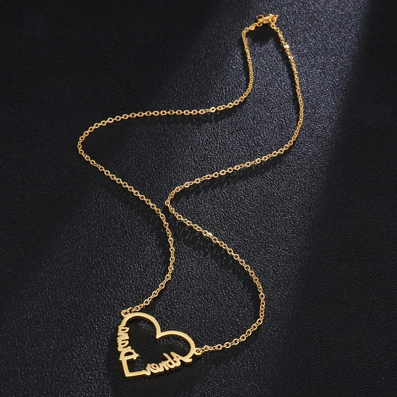 Название:Новое модное персонализированное именное ожерелье из нержавеющей стали на заказ, розовое сердце, ожерелья, ювелирные изделия для женщин и девушек, вечерние, подарок