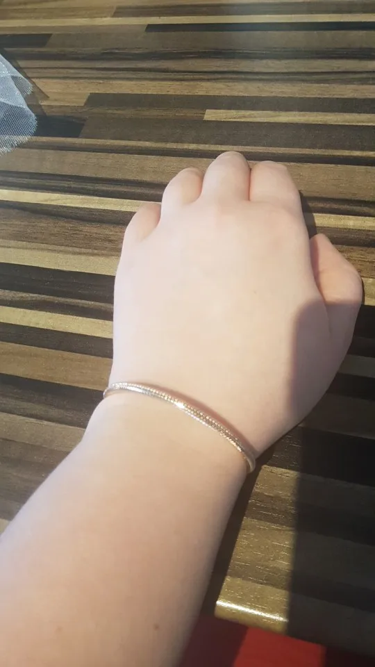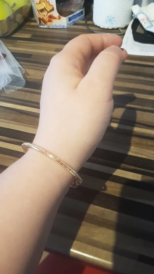 Браслет очень красивый, застежка также аккуратно сделана. Только минус в том, что это немного эластично-я сам застегнул. Если то же самое, то и не rozpiрованa-также супер. Браслет довольно узкий-стоит принять это во внимание, если он все еще на ней сидит. Тем не менее за эту цену-рекомендую