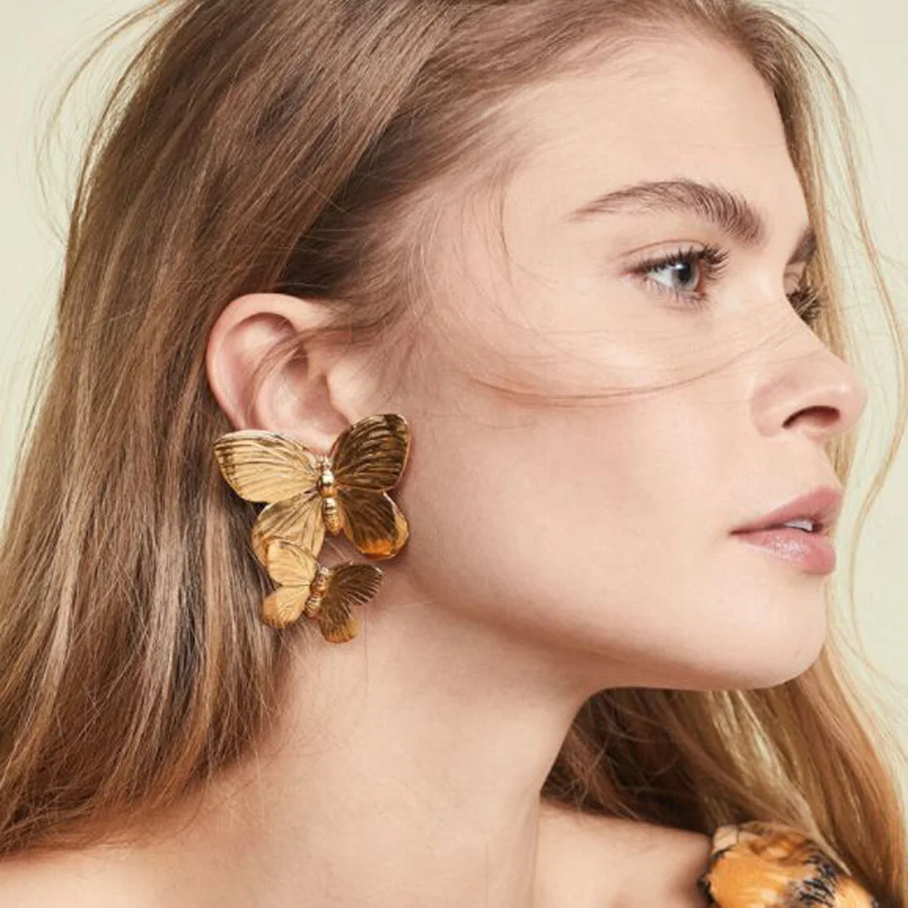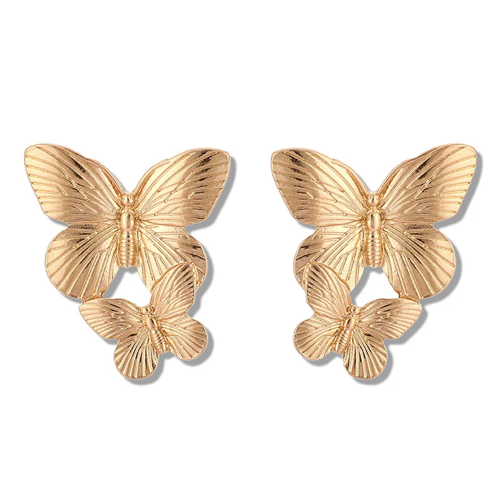 Женские винтажные серьги-гвоздики с двойной бабочкой, креативные серьги из золотого сплава, 1 пара, модные ювелирные изделия