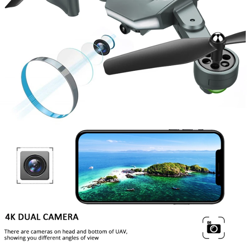 2. HD FPV Flight: оснащен 4K/720P HD, который передает видео в режиме реального времени, s upport переключатель просмотра: нормальный передний объектив, нижний объектив, изображение на картинке, сплит-экран, t он угол наклона камеры регулируется