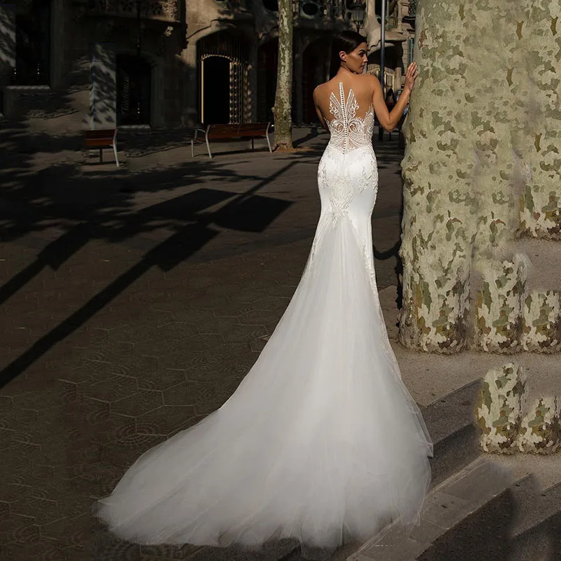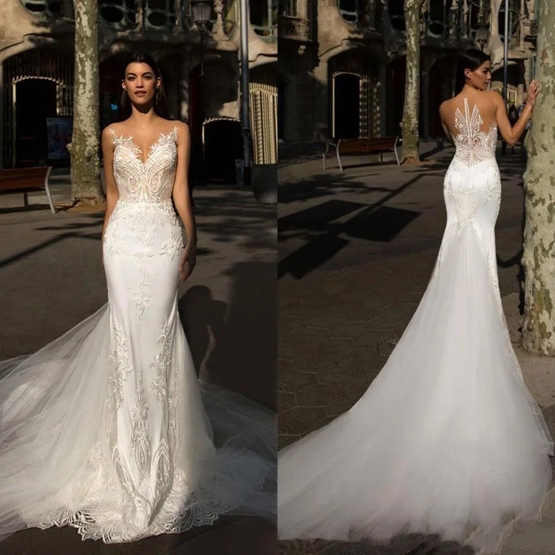 Женское свадебное платье с юбкой-годе, с кружевной аппликацией