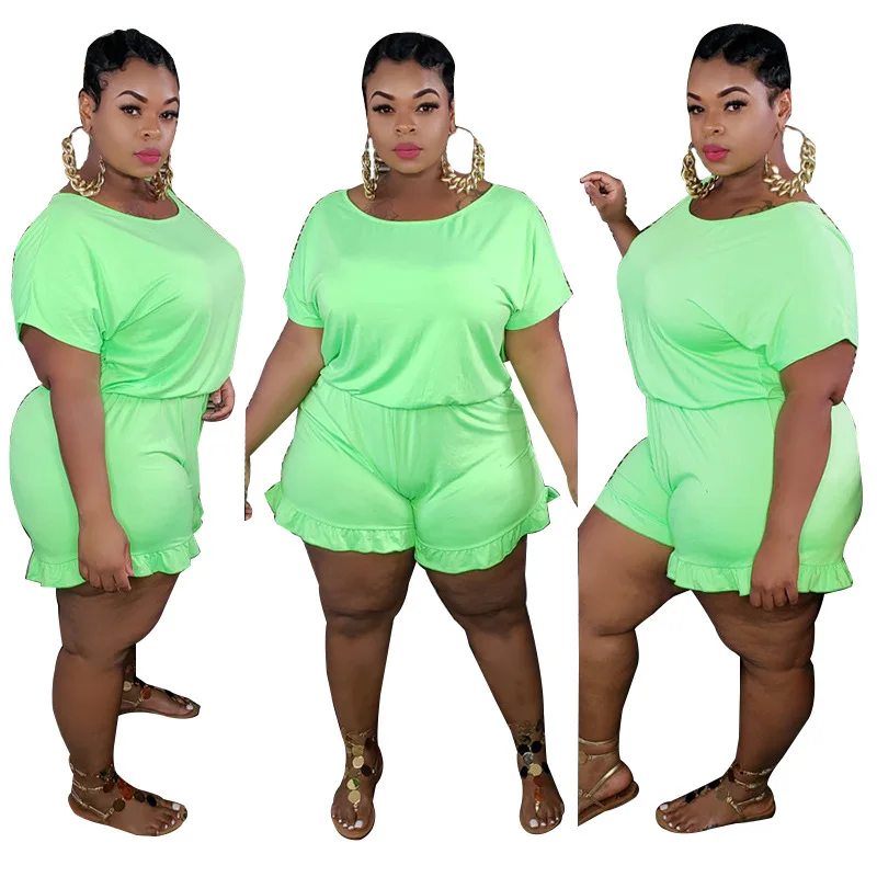 Большой размер, женские комбинезоны, 1XL--5XL, летние, с короткими рукавами, свободные, однотонные, короткие комбинезоны с оборками, удобная повседневная одежда