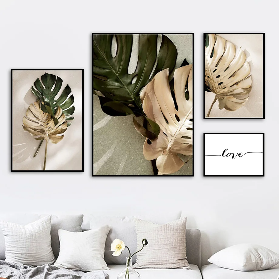 Плакаты и принты в скандинавском стиле с тропическим зеленым растением, лист монстеры, любовь, цитаты, настенное искусство, Картина на холсте, декоративные картины для гостиной