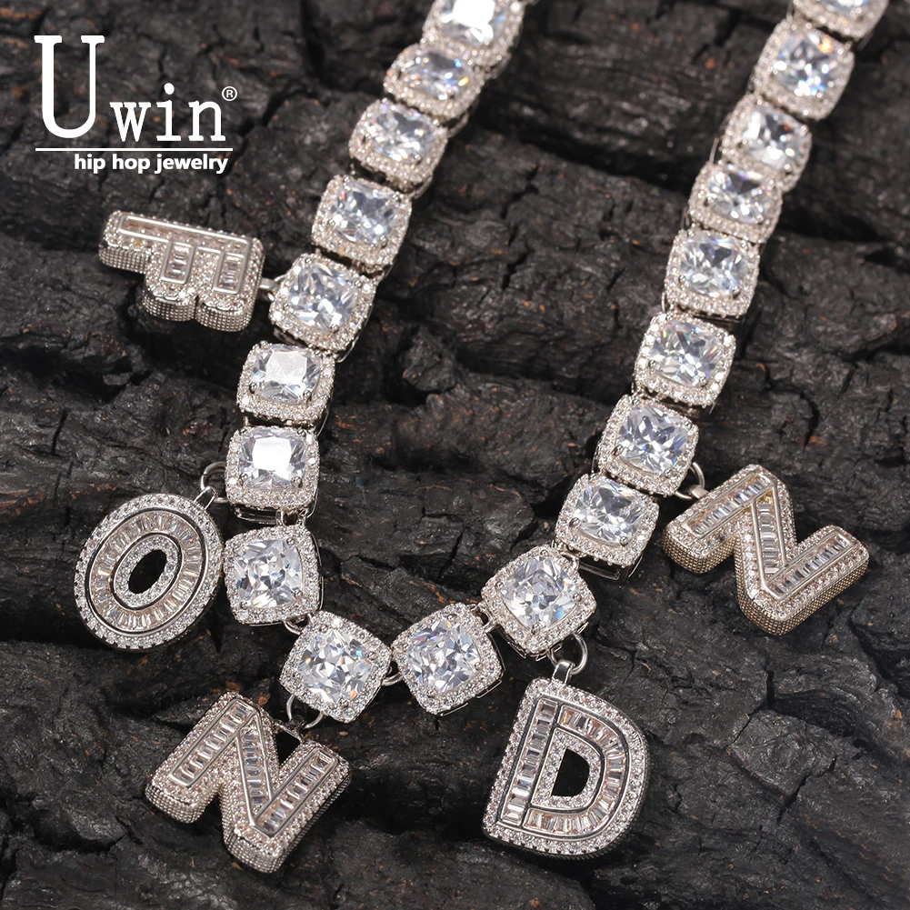 Женское Ожерелье с буквами Uwin, 10 мм, квадратное ожерелье с кубическим цирконием, роскошное колье с микро покрытием, индивидуальный подарок, Прямая поставка