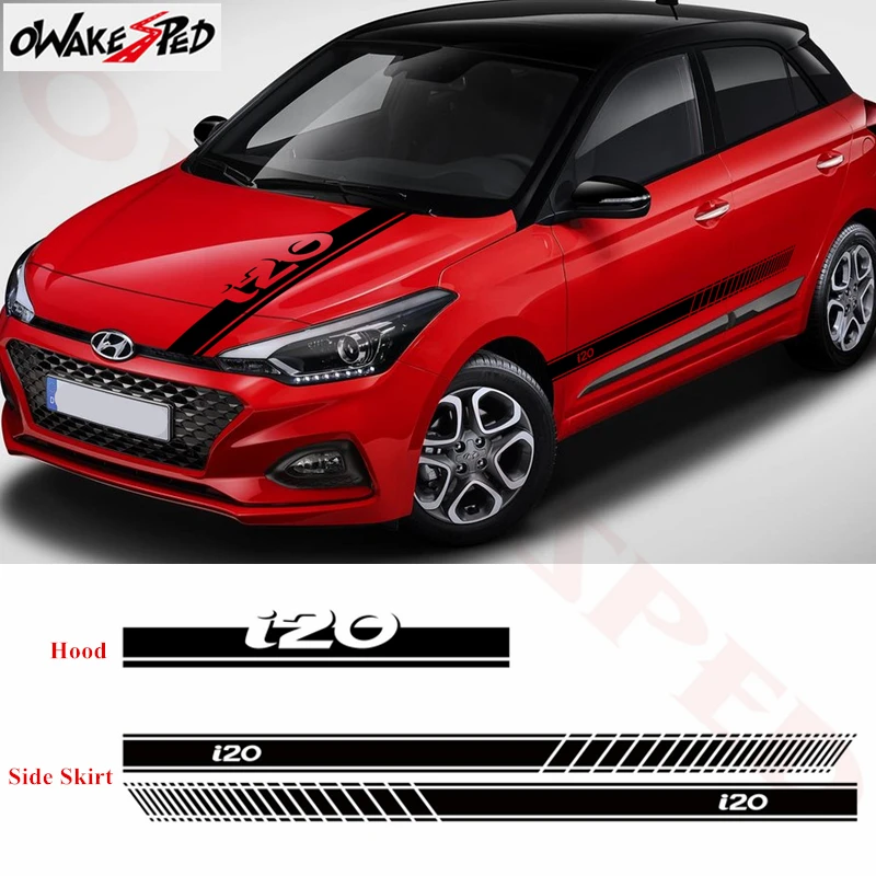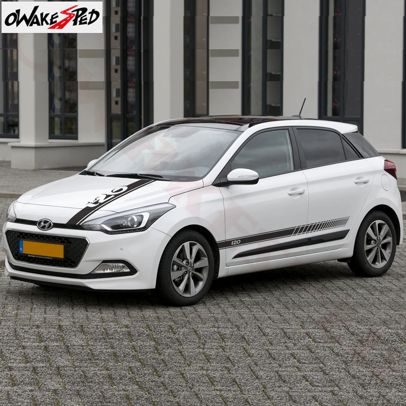 1 комплект наклеек для кузова автомобиля-Hyundai i20, двусторонняя юбка, полосы, декоративные наклейки s, гоночные спортивные аксессуары, автомобильные капоты, виниловые наклейки