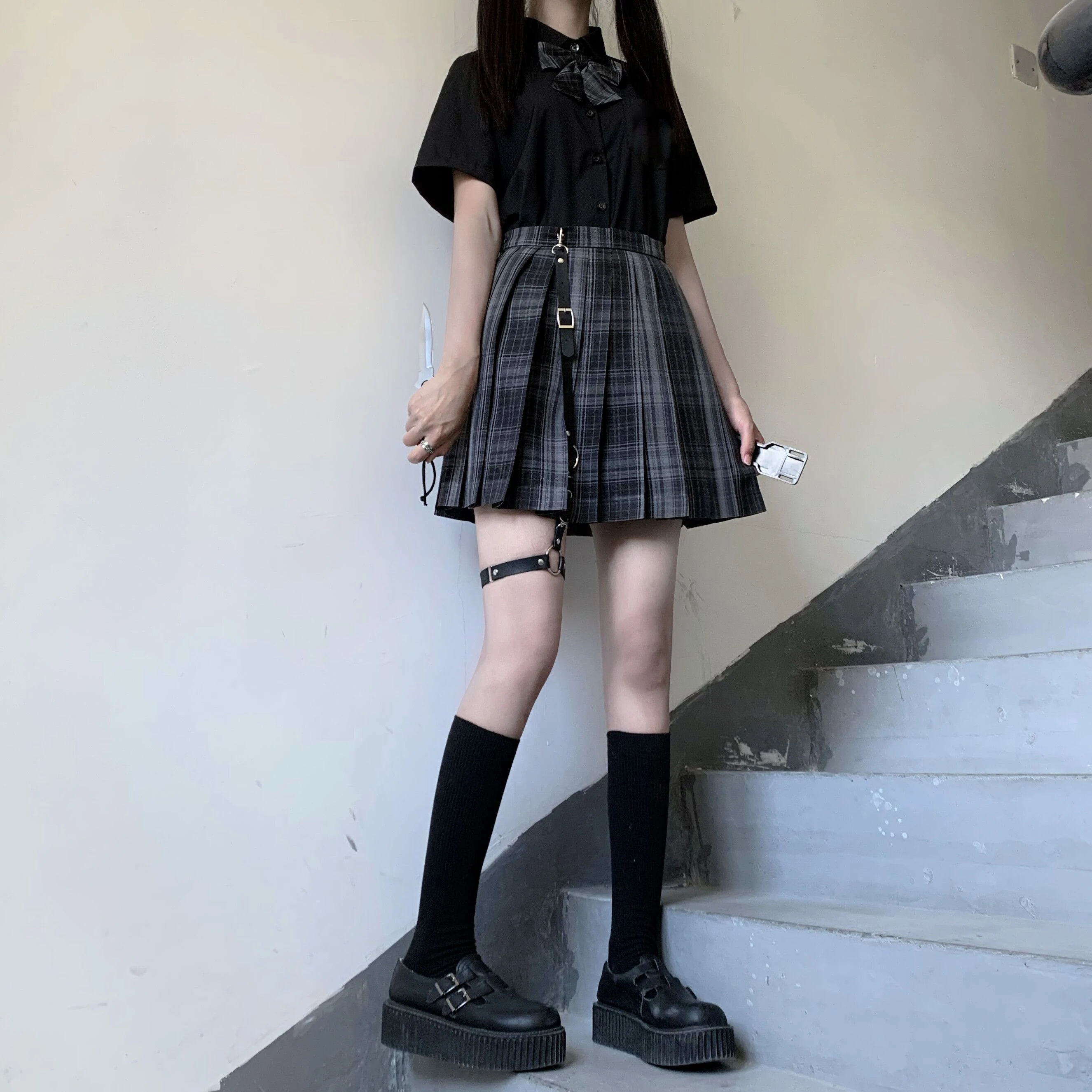 Юбка для девочек, с длиннымкоротким рукавом, в клетку, с высокой талией