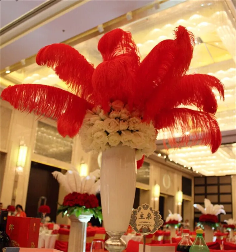 Украшение из красных страусиных перьев, 15-70 см6-28 дюймов, страусиные перья для рукоделия, декоративные перья, Плюмы, карнавал, ремесло, свадебная одежда, плюма