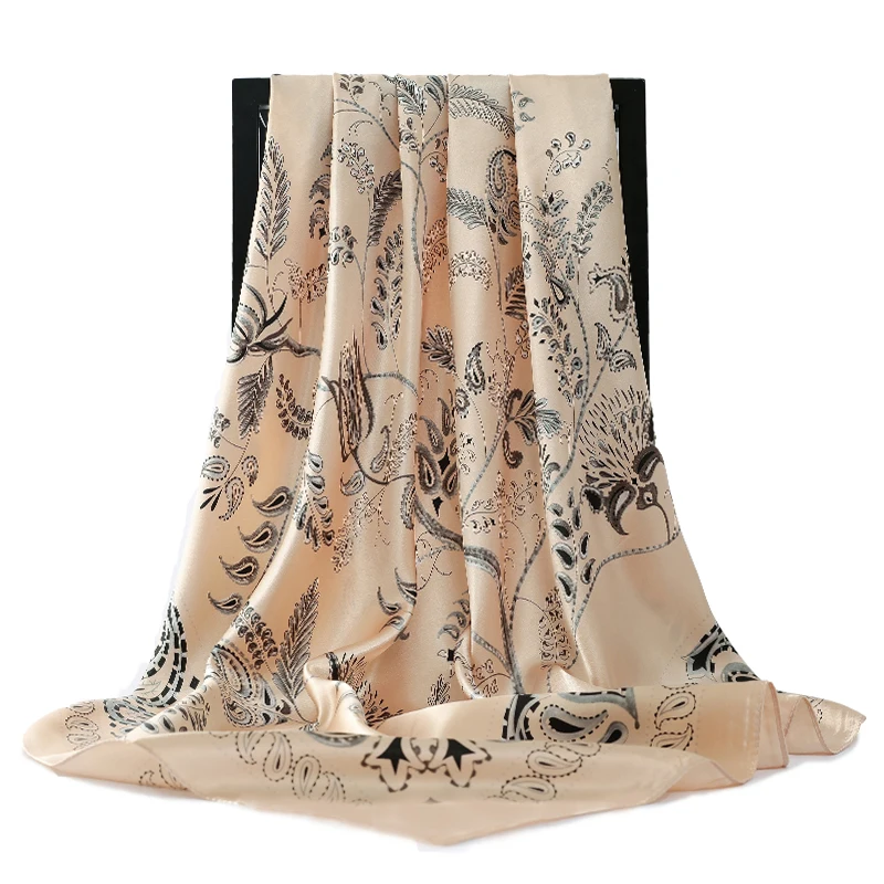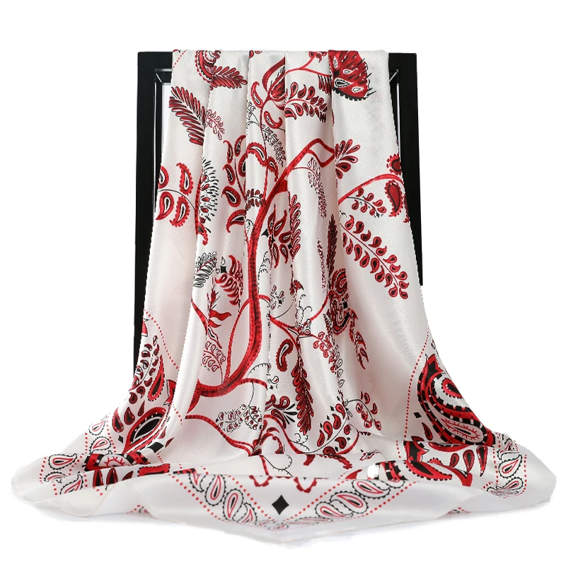 Модные шарфы для женщин, шаль с принтом, Шелковый атласный шарф, женский, 90x90 см, роскошный бренд, квадратный хиджаб, шали, шарфы для женщин