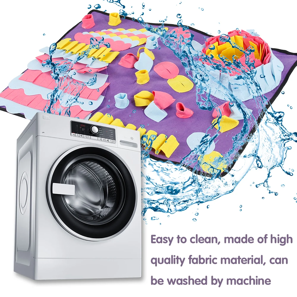Нюхательный коврик стимулирует животный инстинкт и удовлетворяет чувство питомца. Сделайте нос и мозги вашей собаки работать, имитируя охоту на еду. Вызов через тренировочные коврики для собак, избегайте скуки вашей собаки и Участвуйте в разрушительном поступке. Спрятать еду или игрушки вашей собаки в нюхательный коврик, поощрить их искать его, помогает исправить вредные привычки к еде. Управление здоровьем ваших собак предотвращает проблемы со здоровьем пищеварения от слишком быстрого еды. Прочный, не разрывается и не разрывается. Нескользящая подкладка на дне; Портативный дизайн, удобный для вас, чтобы разместить его в любом месте, закатать для хранения. Ваш питомец, безусловно, любит играть и искать коврик, просто удовлетворить их любопытство. Этот коврик для домашних животных идеально подходит для собак, кошек, любого животного с подтягивающим инстинктом. Легко чистить и сушить в безопасности, ручная стирка и машинная стирка.